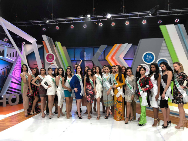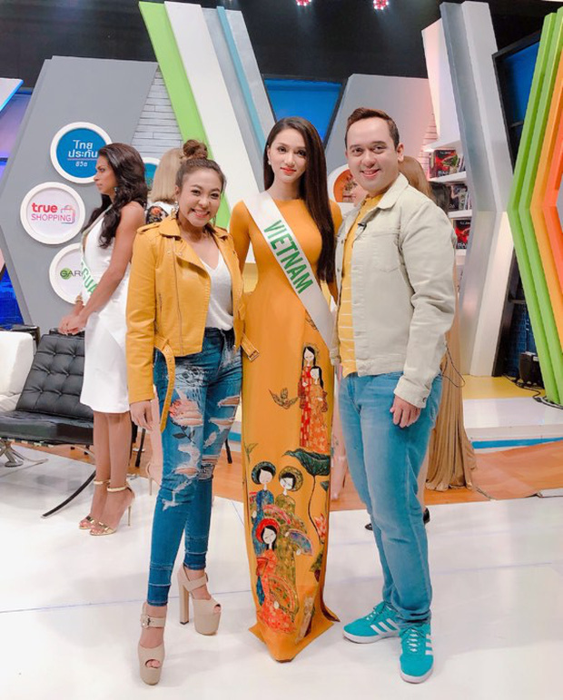 Hương Giang cũng từng lựa chọn áo dài để ghi hình cho kênh GMM25 của Thái ở mùa giải Miss International Queen 2018.