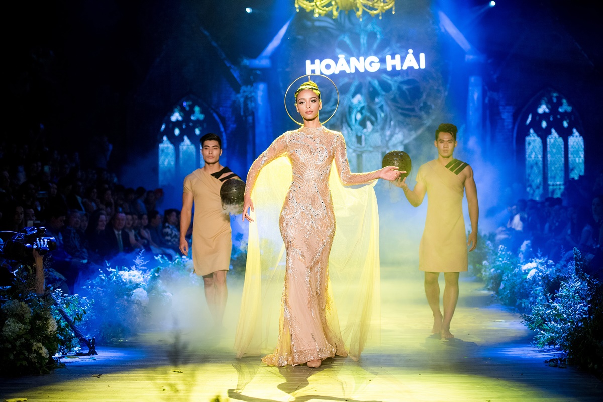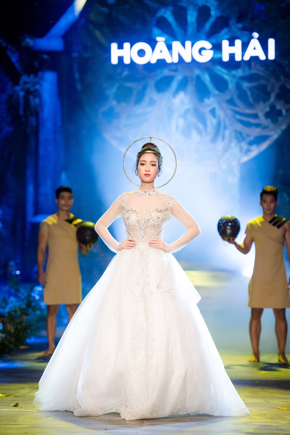 Huyền My trở thành gương mặt mở màn cho bộ sưu tập của Hoàng Hải vô cùng xinh đẹp, kiêu sa.