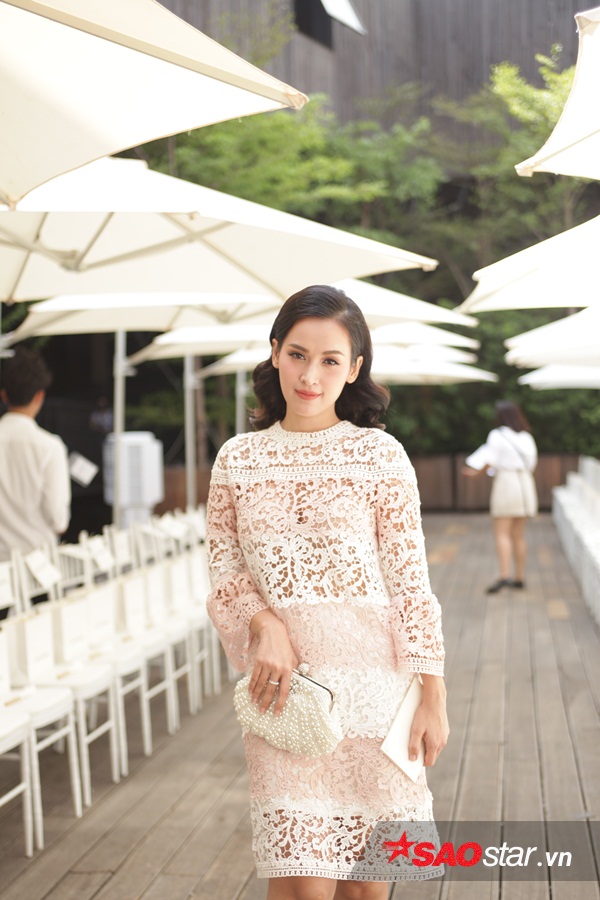 Tú Vi nữ tính với chiếc váy ren dáng suông tông hồng trắng, một mình có mặt tại sự kiện.