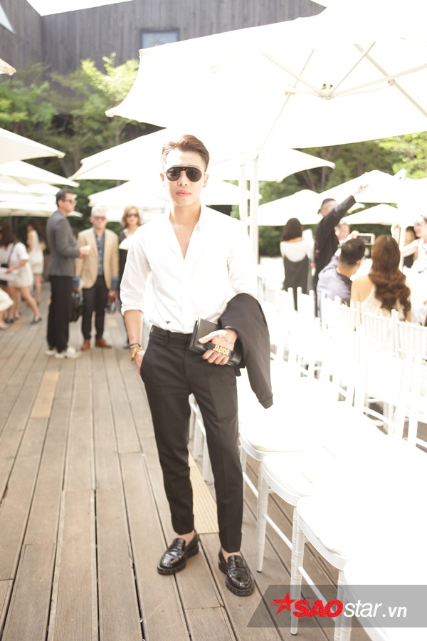 Lâm Gia Khang dù là nhân vật chính trong sự kiện thời trang hôm nay nhưng anh ăn mặc rất giản dị và vô cùng phấn khích khi tiếp đón những vị khách mời.