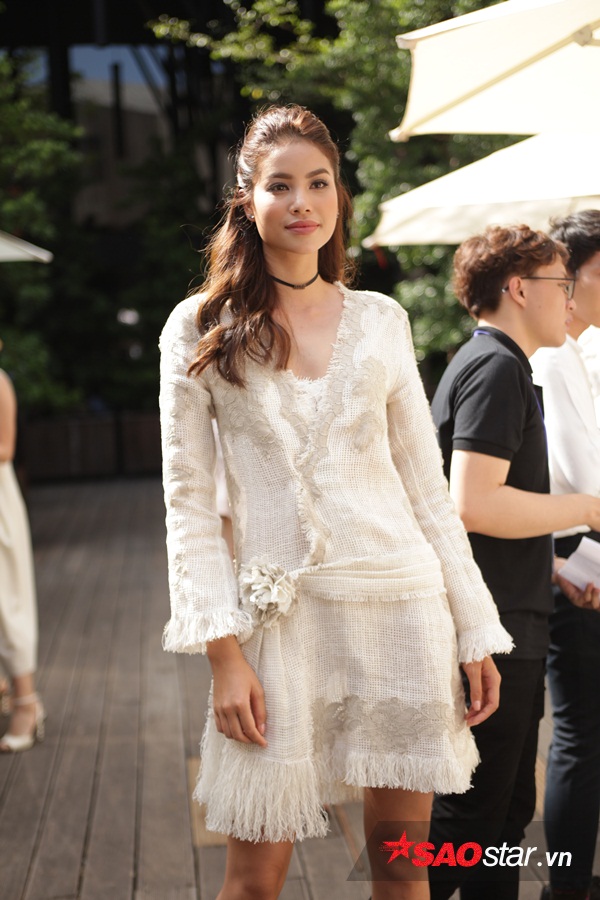 Phạm Hương đơn giản với chiếc váy chân tua rua.