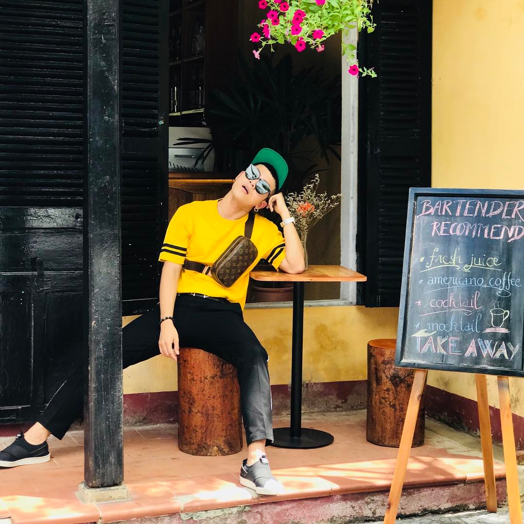 Mai Tiến Dũng “tỏa sáng” cùng áo phông tông màu vàng đúng mốt. Anh chàng còn khéo léo nhấn nhá thêm đồng hồ, túi Louis Vuitton để tăng phần nổi bật.