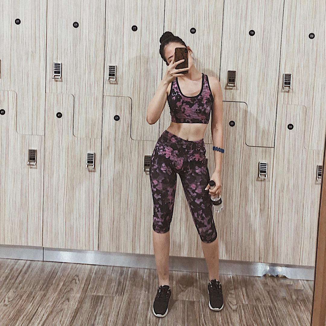 Diễn viên Thùy Anh khoe vóc dáng săn chắc cùng đồ tập ôm sát gợi cảm.