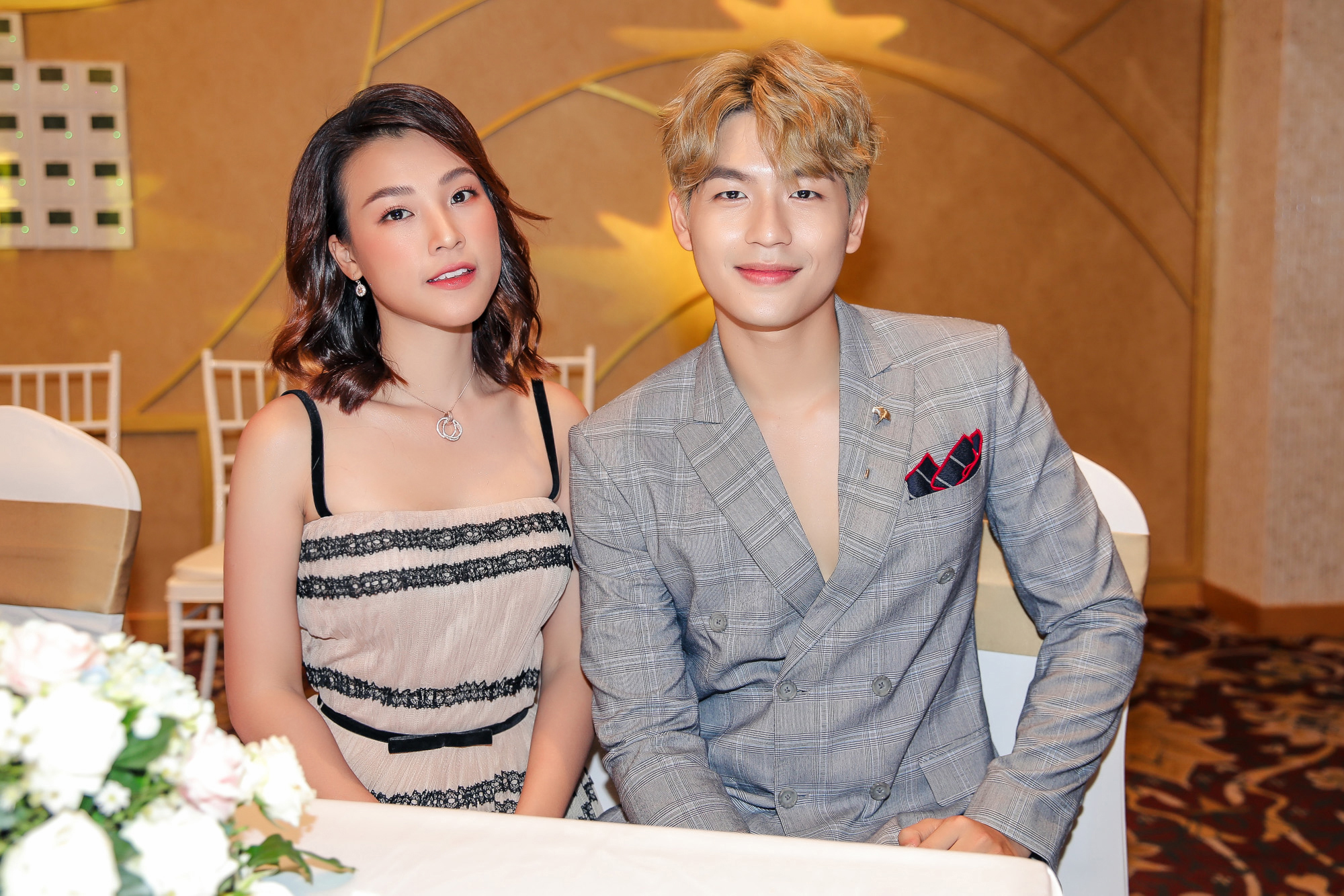 Sánh đôi cùng Hoàng Oanh trong sự kiện lần này là nam diễn viên Quốc Anh. anh chàng chọn cho mình bộ vest xám với tông màu trung tính.