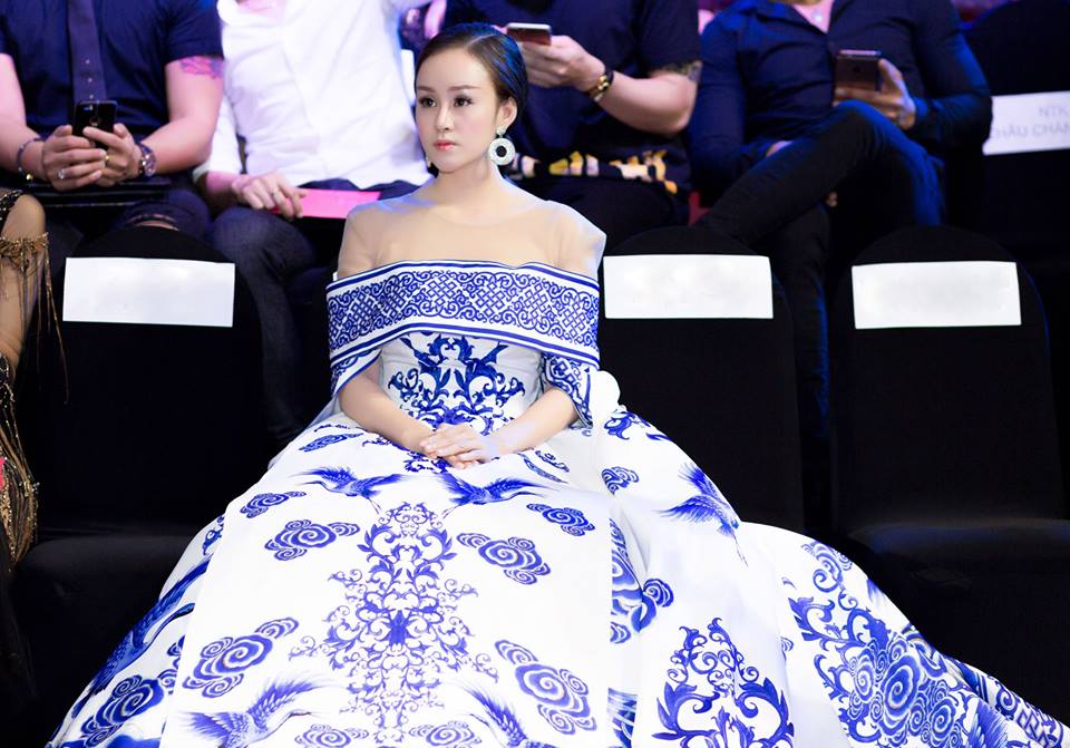 Xuất hiện tại đêm Chung kết cuộc thi Việt Nam Next Top Model 2017, Bà Tưng - Huyền Anh cũng đã từng chọn chiếc đầm cầu kì của NTK Brian Võ để “so kè” cùng các nhan sắc đình đám khác. Không thể phủ nhận, Huyền Anh vô cùng nổi bật trên thảm đỏ và có phần nhỉnh hơn so với nhan sắc của đại diện Việt Nam tại Miss Globe Beauty Queen 2017 khi cùng diện chiếc đầm này.