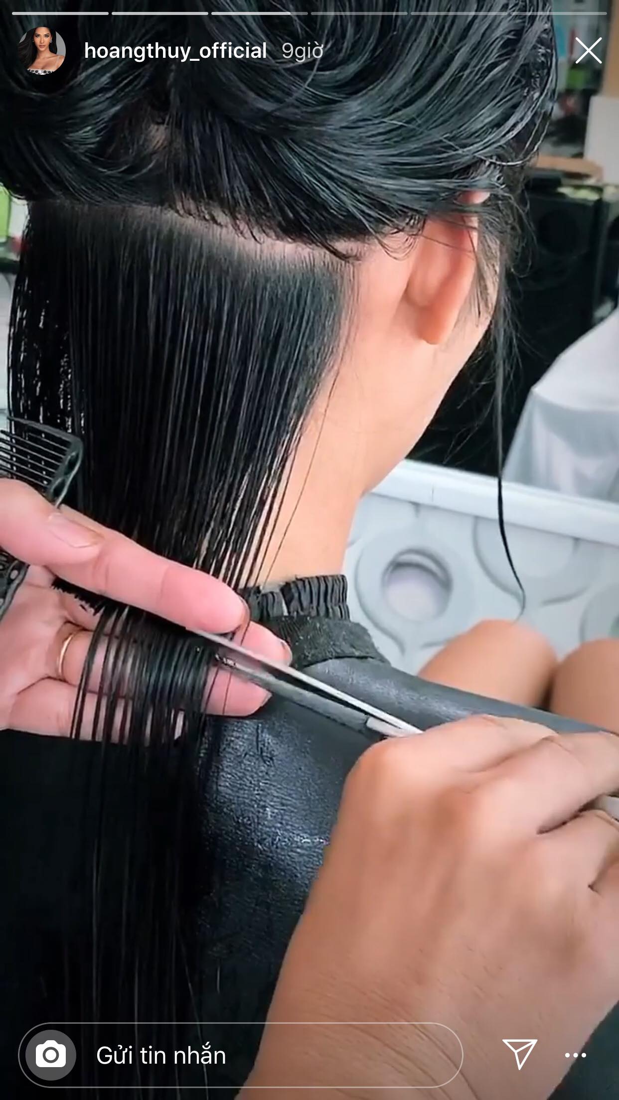 Mái tóc mới này cũng khá phù hợp với gương mặt của Hoàng Thùy. Trước Hoàng Thùy, Hoa hậu Đỗ Mỹ Linh cũng cắt phăng mái tóc dài của mình trước thềm hết nhiệm kỳ.