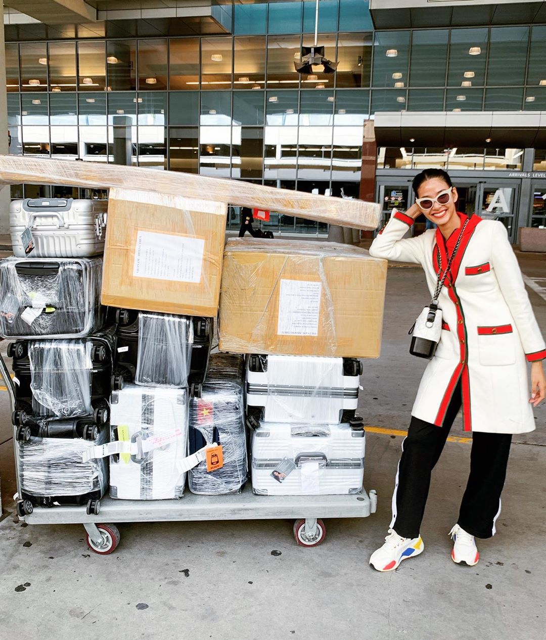 Xuất hiện tại sân bay Atlanta, Hoàng Thùy khoe thần sắc rạng rỡ với nụ cười tươi như hoa. Diện mạo của cô không cho thấy sự mệt mỏi, uể oải mặc dù trải qua hơn một ngày bay. Bên cạnh diện mạo tươi rói thì set trang phục Hoàng Thùy diện trong ngày đầu tiên ở đất Mỹ khiến ai nấy cũng giật mình.