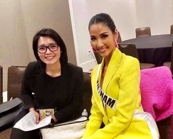 Hoàng Thùy rạng rỡ bên thông dịch viên