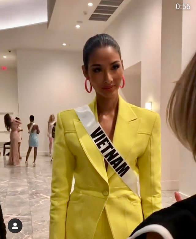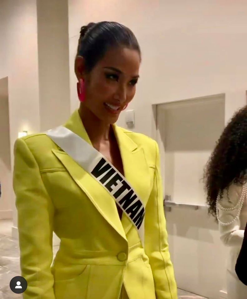 Năm ngoái khi bước vào vòng phỏng vấn kín, H'Hen Niê diện suit trắng, năm nay một lần nữa Hoàng Thùy cũng chọn kiểu trang phục này.