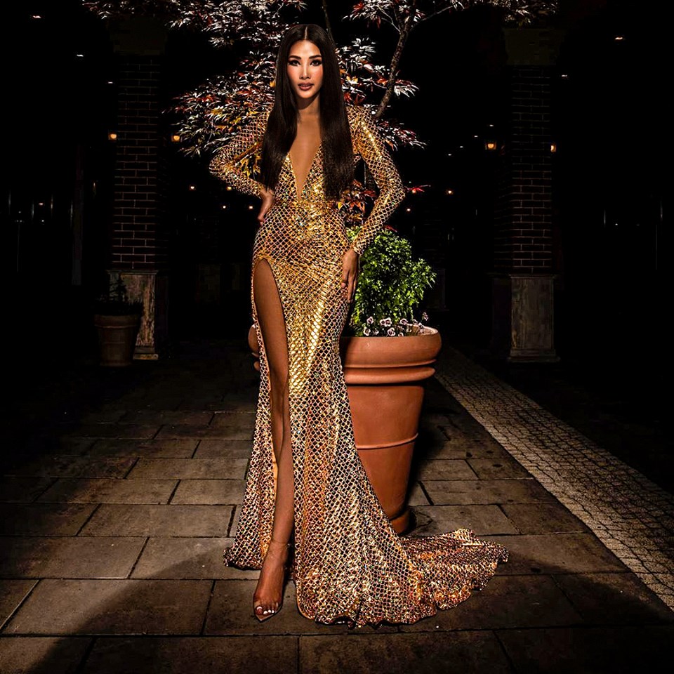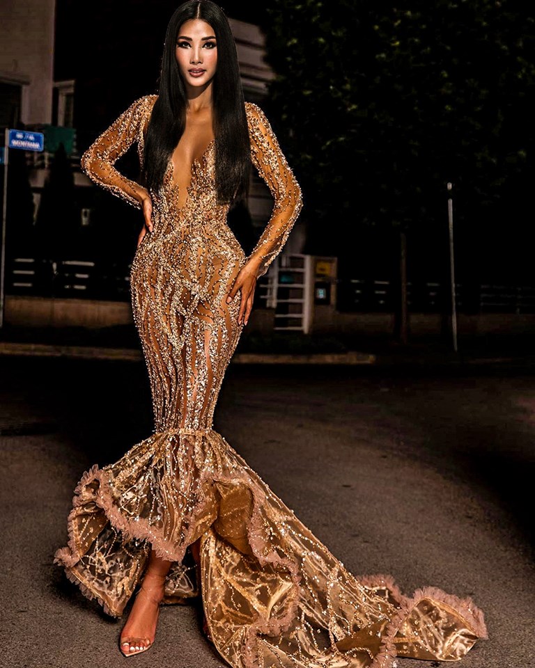 Bên cạnh sắc trắng, fan cũng cất công hiến kế nhiều kiểu trang phục dạ hội khác cho Hoàng Thùy. Tuy đây chỉ là những hình ảnh do fan ghép, nhưng cũng lắm hiệu quả, cẩn thiết cho Hoàng Thùy và ê-kíp nếu như tiếp thu để có một diện mạo “hợp lòng dân” nhất khi đến Miss Universe 2019.