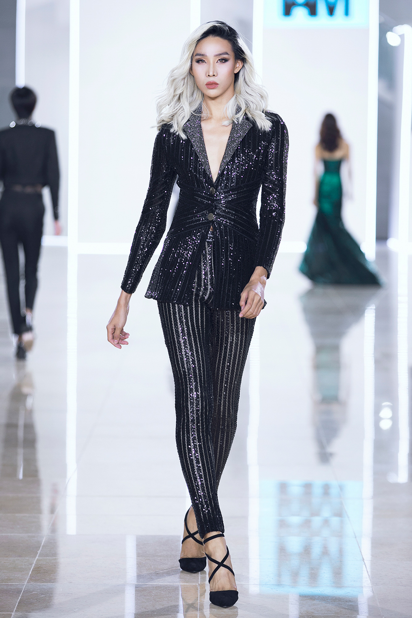 Những dáng đầm bodycon gợi cảm trên nền vải ánh kim lấp lánh, những chiếc áo body-suits mạnh mẽ với phần độn vai nữ quyền đến những kiểu áo bomber jacket có khả năng phản quang theo từng bước sải chân uyển chuyển của model, tất cả đều góp phần tạo nên những bộ outfit đầy tính xu hướng thời đại.