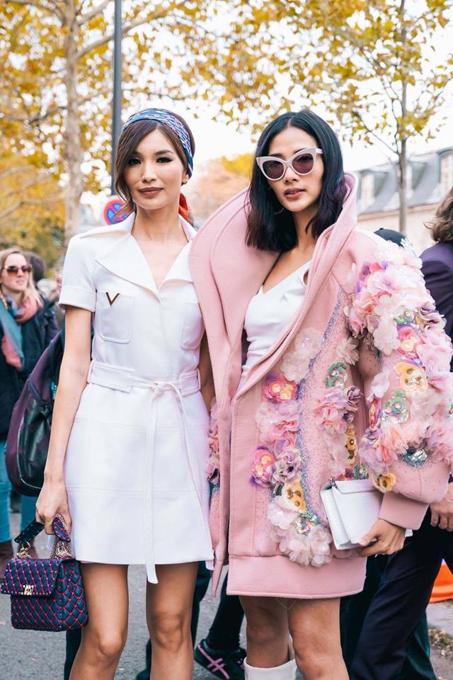 Cô chị Astrid xinh đẹp trong bộ phim “Siêu giàu Châu Á” và người mẫu Hoàng Thùy xuất hiện trước thềm của một show thời trang thuộc Paris Fashion Week