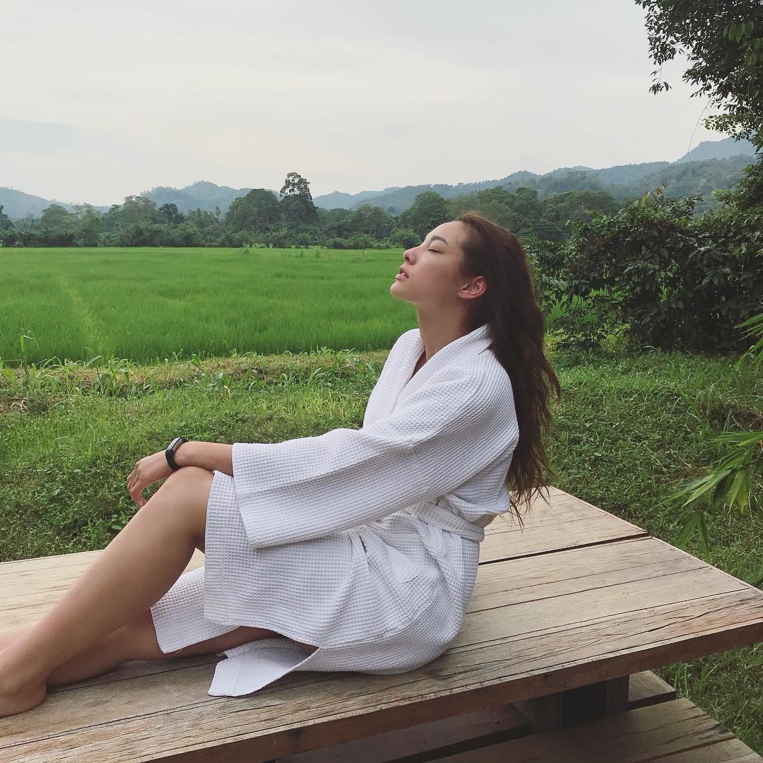 Lilly Nguyễn gia nhập hội người đẹp Vbiz “mê mệt” áo choàng tắm. Thí sinh The Face Việt mùa đầu tiên khoe trọn hình thể mướt mát cùng đôi chân dài với kiểu áo choàng xẻ tà. Mái tóc cũng được tạo kiểu rối nhẹ nhàng đúng chuẩn “tuy luộm thuộm nhưng vẫn phải đẹp”.