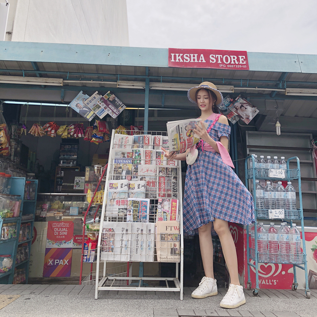 Trái ngược với Đồng Ánh Quỳnh, Trương Mỹ Nhân lại yêu thích nét duyên dáng, thanh tao từ mẫu váy xòe tay rớt, họa tiết sọc ca-rô này.