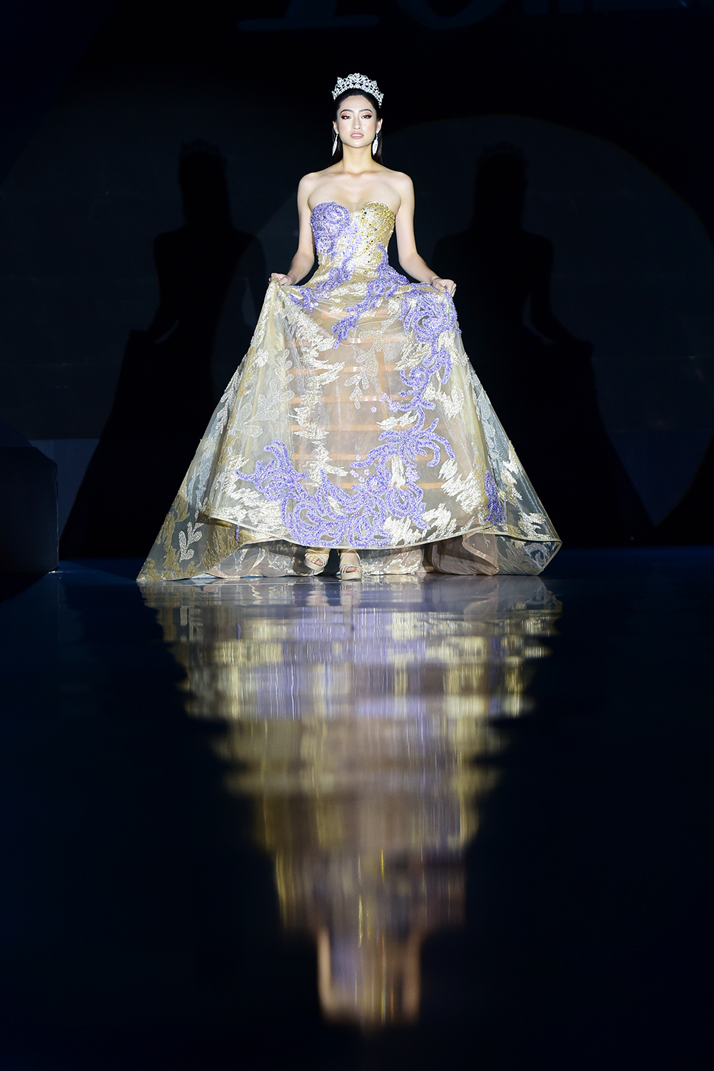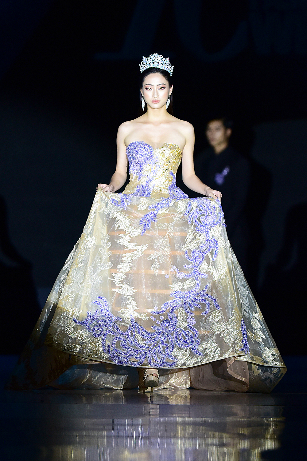 Hoàng Thùy diện váy xuyên thấu đính đá công phu bước đi thần thái trên sàn diễn.