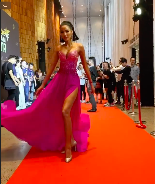 Điều đáng nói là dù trên thảm đỏ nhưng Hoàng Thùy vẫn không quên tung sương sương màn “Bamboo walk” kinh điển từng oanh tạc trên sân khấu Miss Universe khiến nấy khó lòng làm ngơ.
