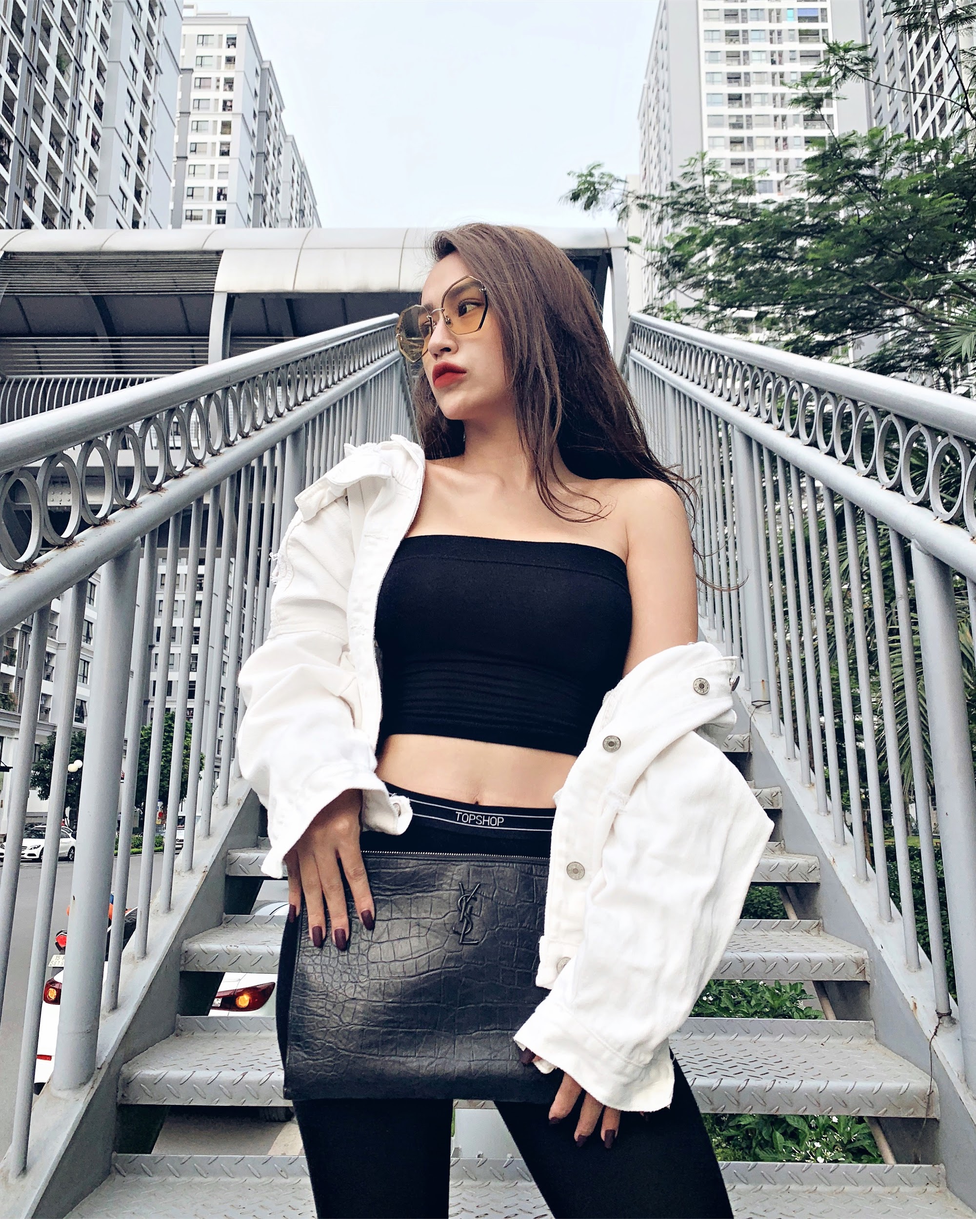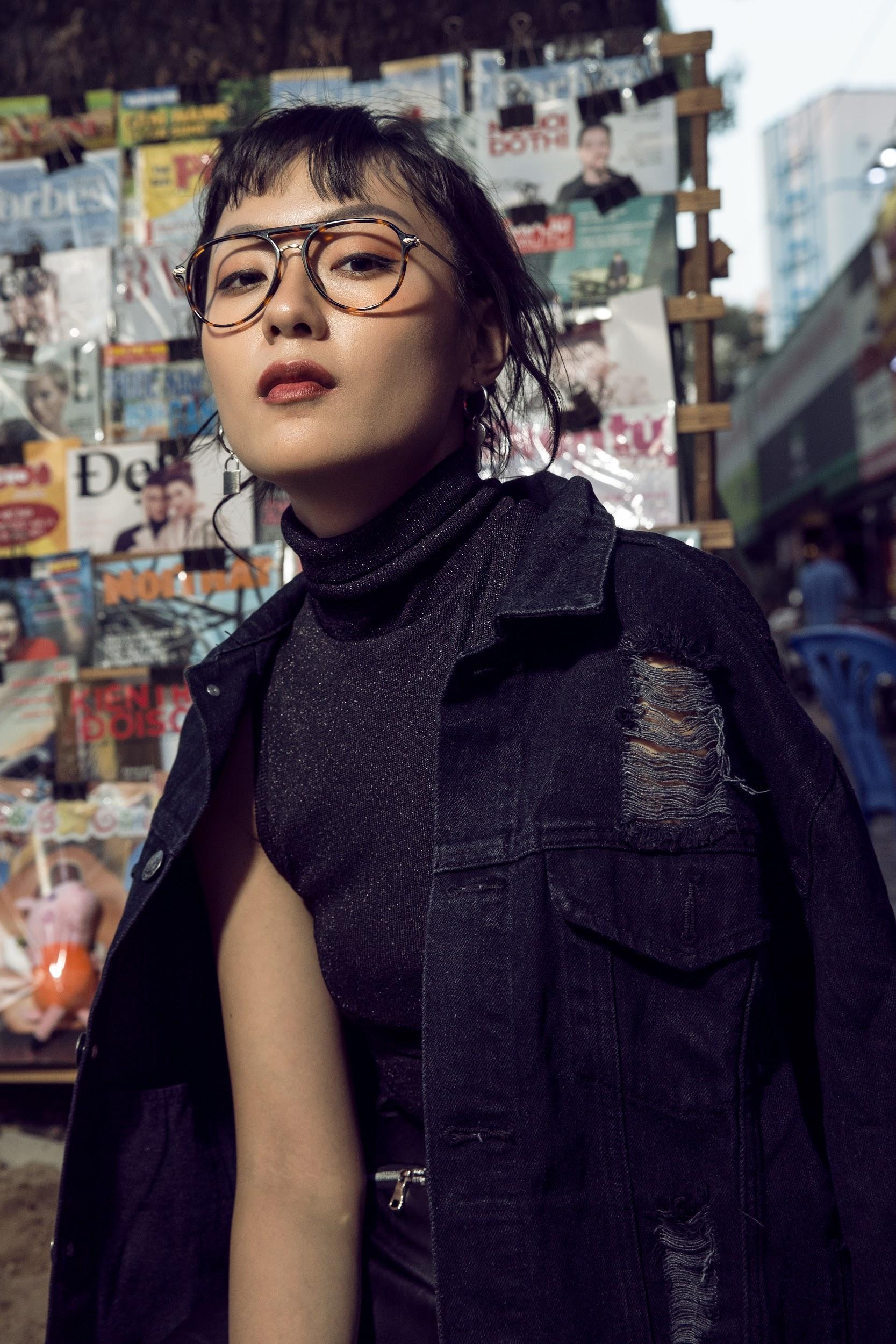 Cùng một dáng kính aviator, Thu Anh dễ dàng biến hóa từ phong cách geek chic tinh nghịch và nổi loạn đến cosmopolitan khỏe khoắn và phóng khoáng giữa đường phố hối hả.