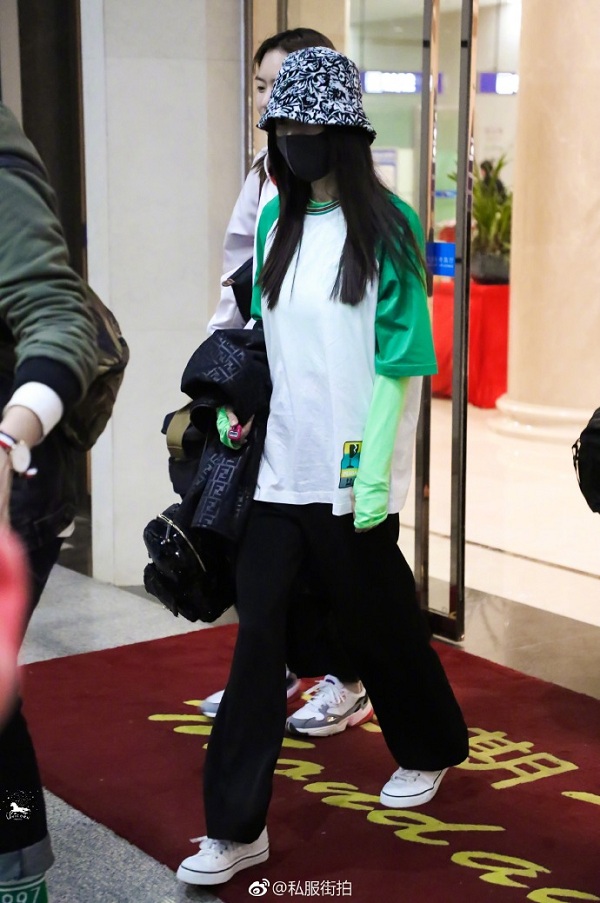 Dương Mịch thường áp dụng style này kể cả khi đi sân bay để giữ ấm cơ thể