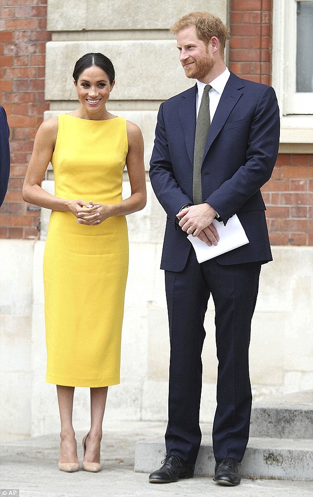 Bởi lẽ, trước đó vài hôm, công nương Meghan Markle đã tỏa sáng và thu hút mọi ống kinh với chiếc đầm cổ thuyền cạn cộc tay, có màu vàng sáng tương tự chiếc áo mà công nương Kate mặc hôm qua.