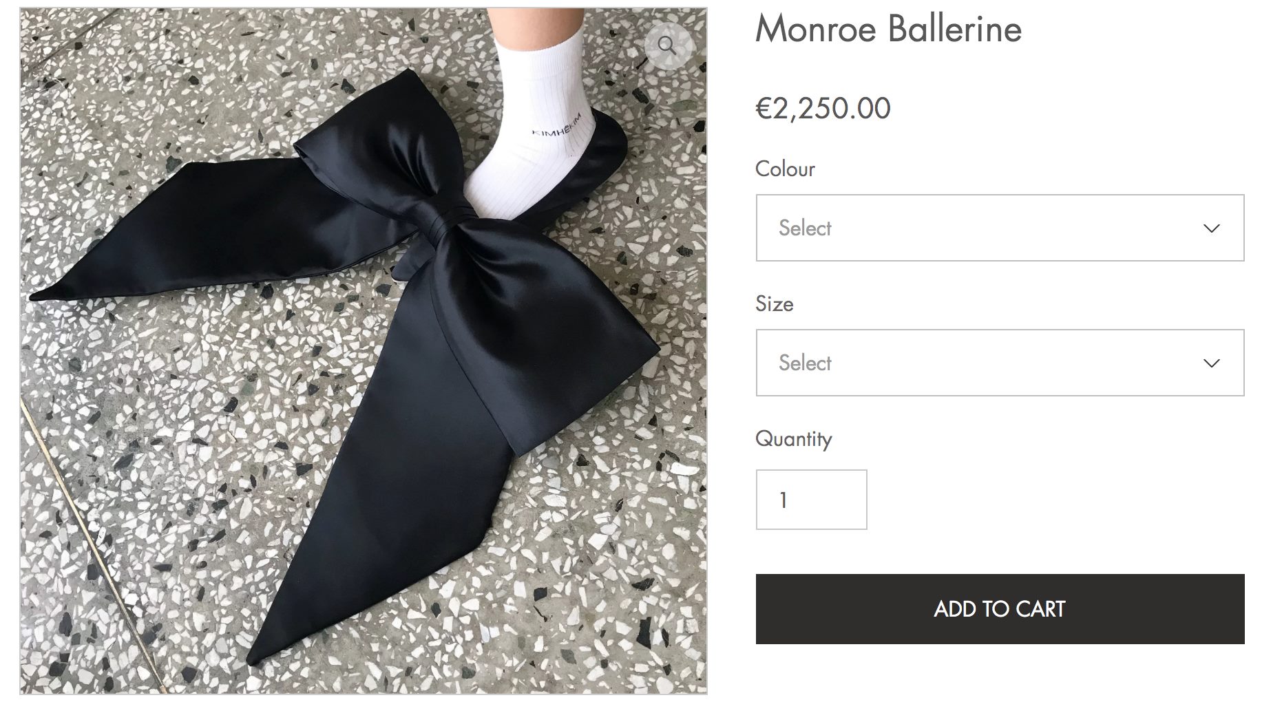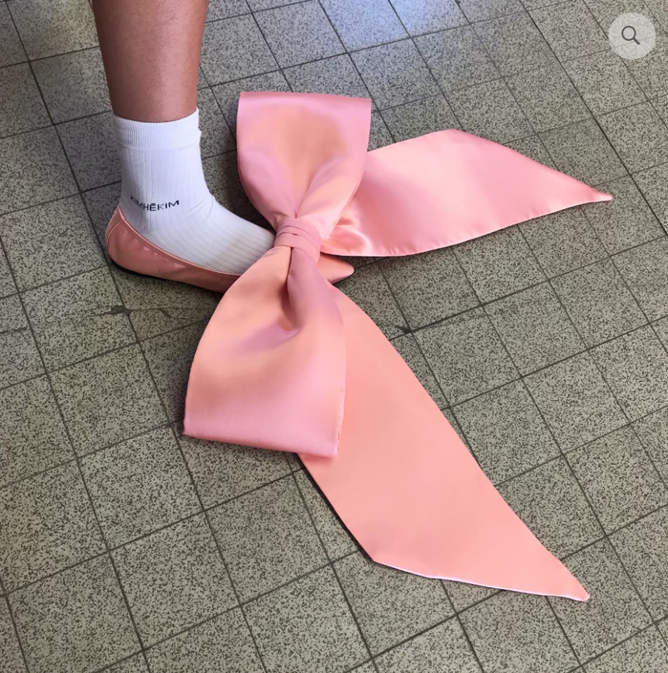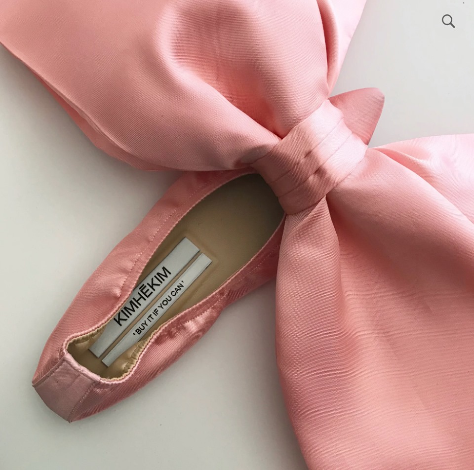 Nhà mốt Kimhekim mới cho ra mắt loại giày búp bê với thiết kế siêu lạ lẫm. Điểm lạ ở đôi giày này là bản nơ đính trên giày siêu to, có thể to gấp đôi chiếc giày, được làm bằng chất liệu là vải satin. Hãng cho ra mắt với hai màu: đen sang trọng và hồng nhẹ nhàng. Chắc hẳn khi mang đôi này các cô gái sẽ không lo bị lạc đường.