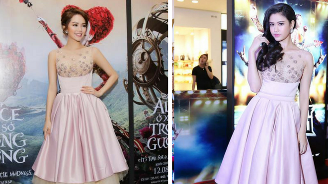 Một lần khác, bà xã Tim lại mặc cùng thiết kế với bà xã Trấn Thành. Với vòng một nảy nở cùng vóc dáng chuẩn thước. Trong thiết kế này, Quỳnh Anh có phần nổi bật hơn ca sĩ gốc Hàn nhiều.