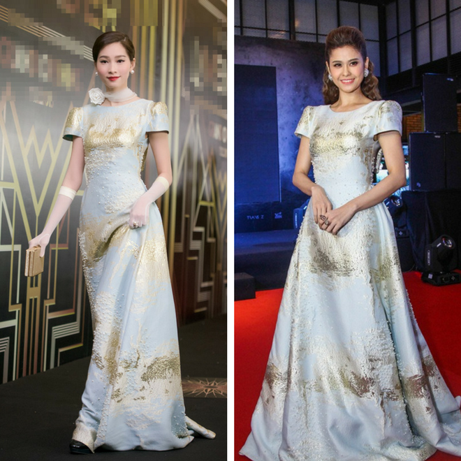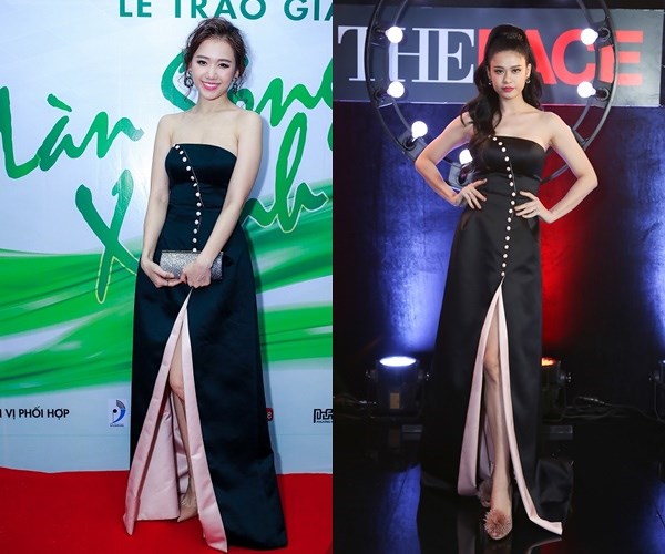 Một lần khác mặc cùng thiết kế với hoa hậu Đặng Thu Thảo, Trương Quỳnh Anh có phần lép vế bởi chiều cao. Tuy nhiên, bộ váy cũng khá phù hợp với ca sĩ hơn nếu nó có thể ngắn hơn một chút.