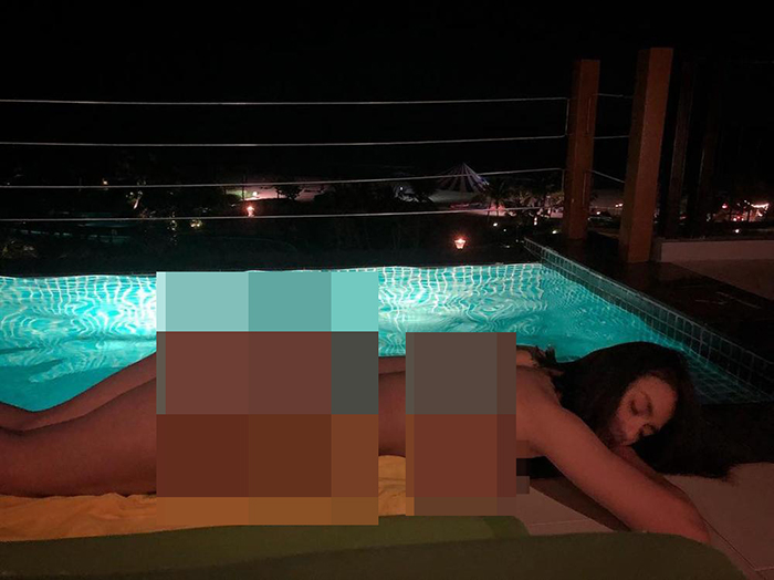 Trước khi công khai bức ảnh trên, Hồng Quế từng chia sẻ khoảnh khắc gợi cảm khác được chụp từ phía sau khiến nhiều người phân vân “Hồng Quế đang không mặc quần”.