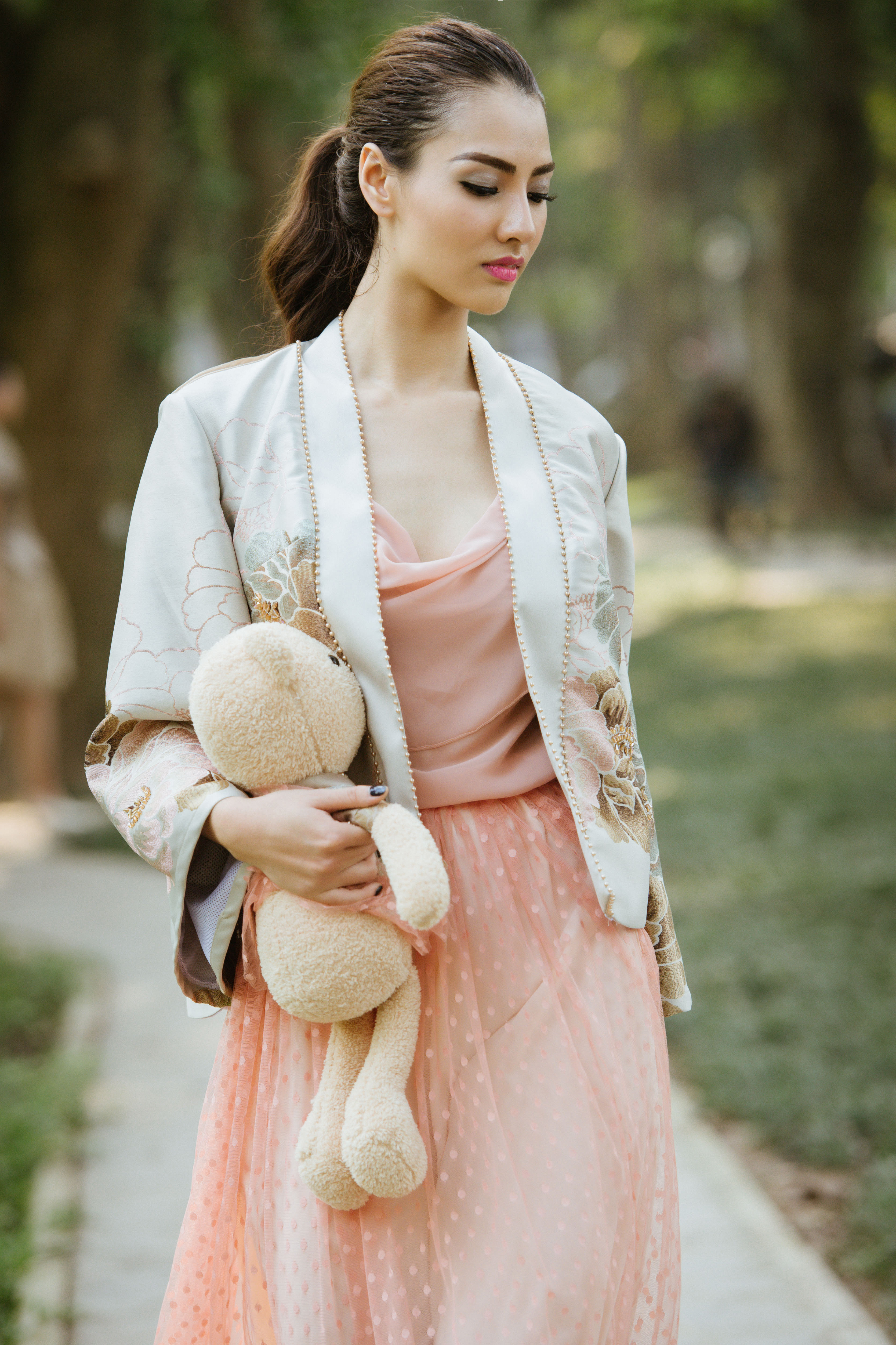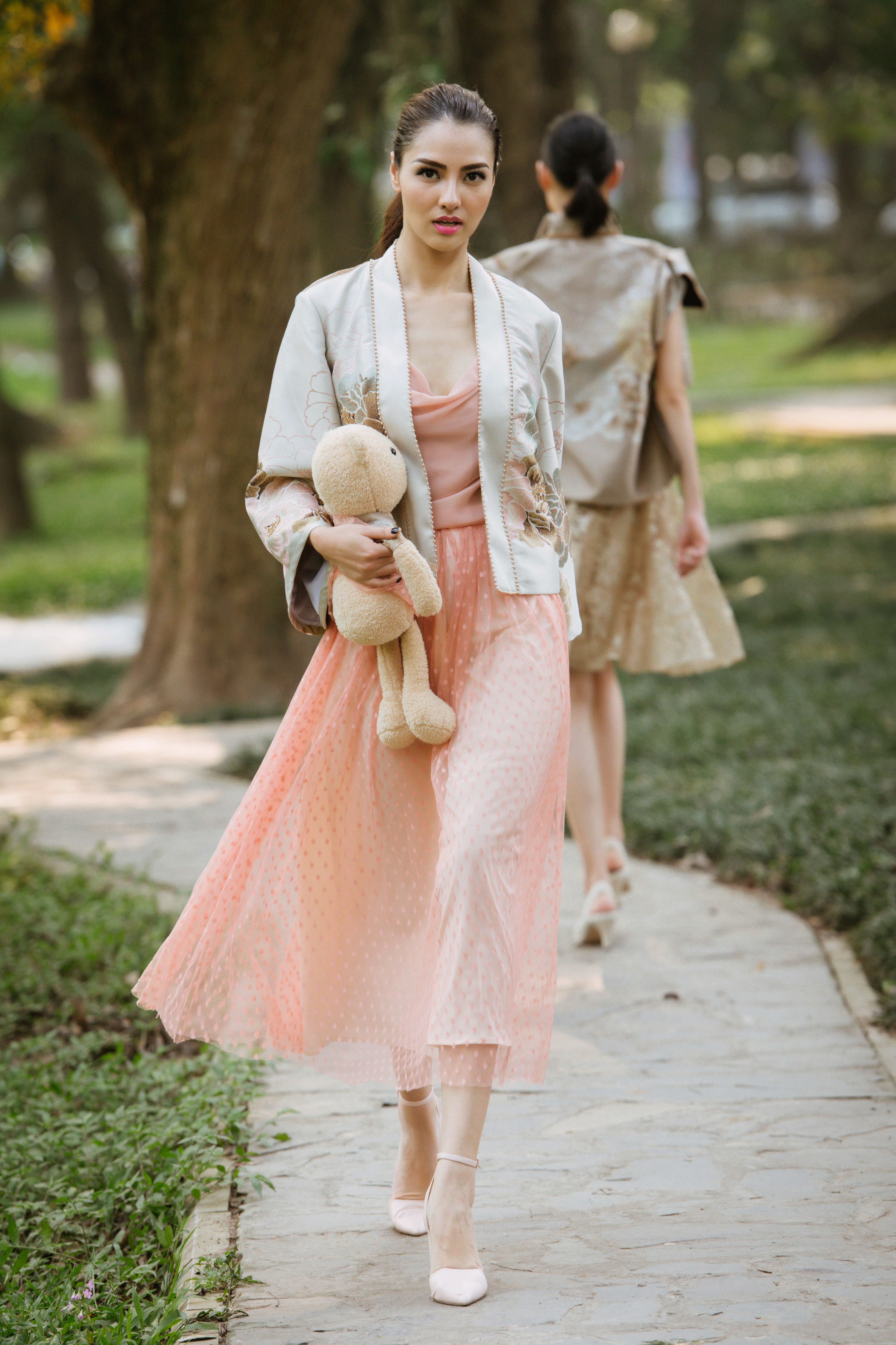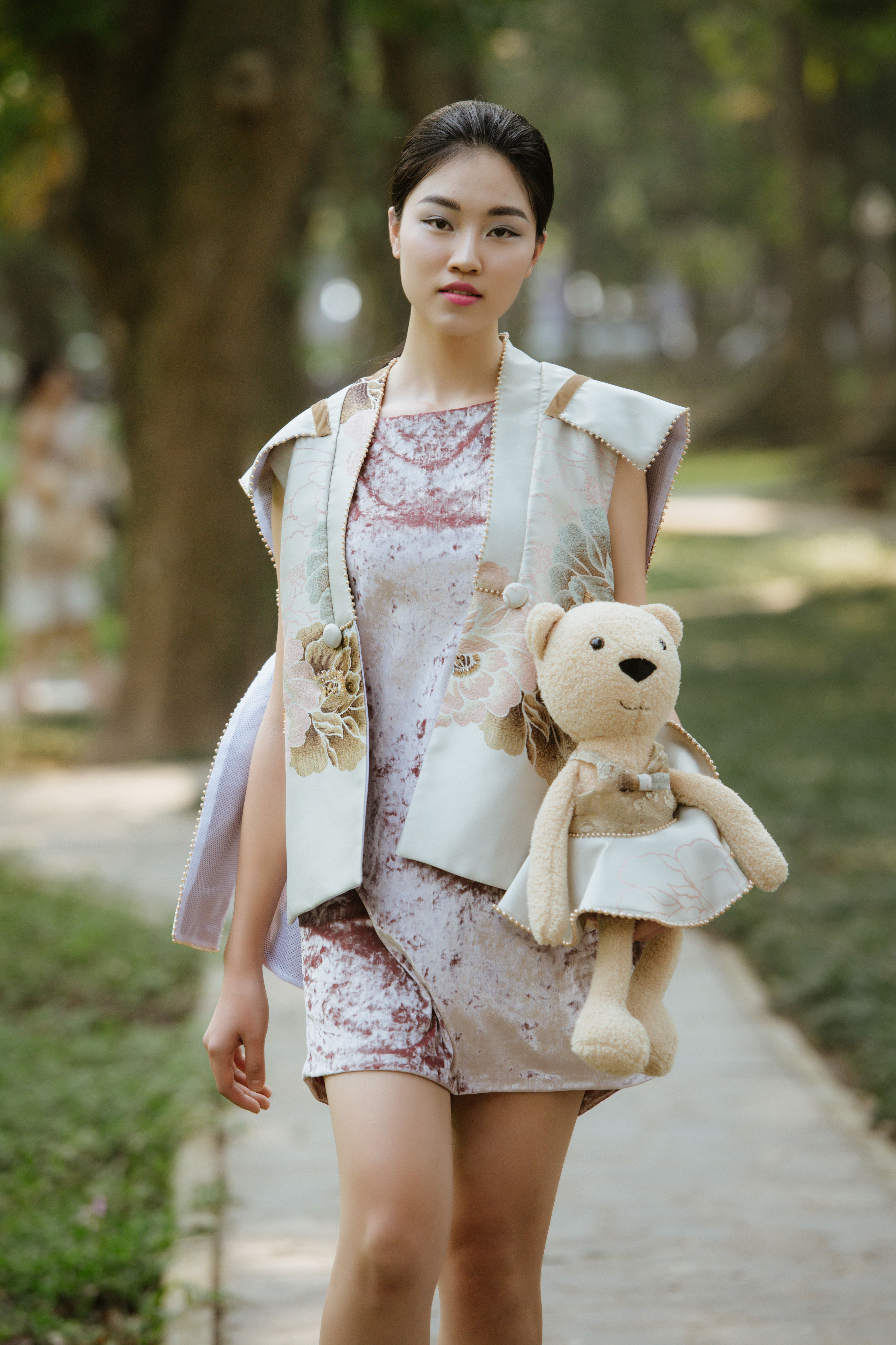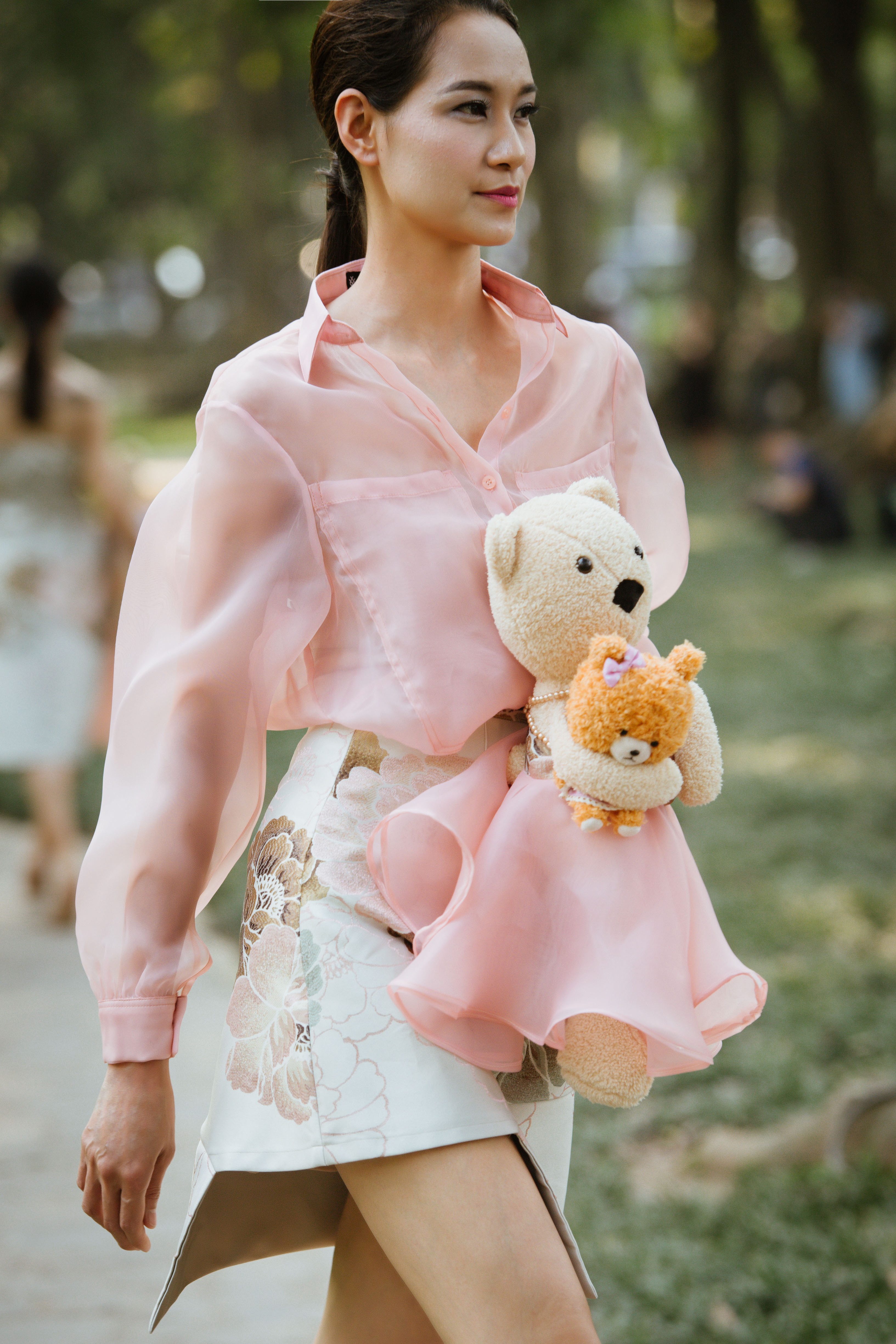 Ngoài Hồng Quế, Trang Phạm, Đào Thị Hà, Mai Giang, hay “Hoa hậu thân thiện” Ngọc Anh… cũng gây chú ý khi ôm gấu bông trình diễn trong bộ sưu tập mới “Giai điệu Phương Đông”
