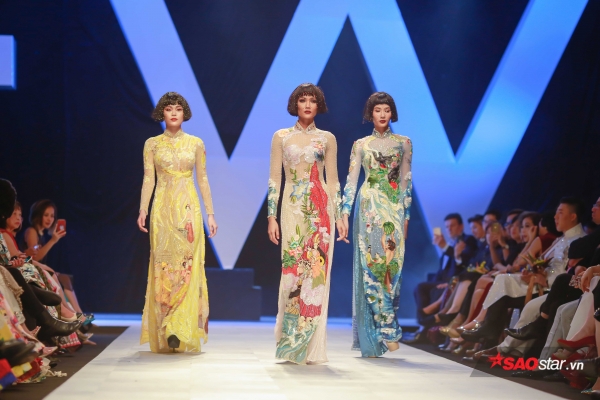 Diện những tà áo dài nổi bật, các người đẹp đã tạo nên một phần mở màn ấn tượng trong bộ sưu tập “Coco yêu dấu” của NTK Công Trí.