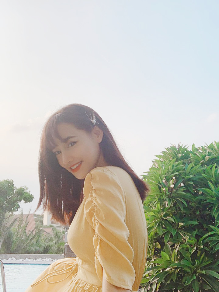 Nhã Phương khoe chiếc váy vàng nhẹ nhàng, style xõa tóc hiền lành