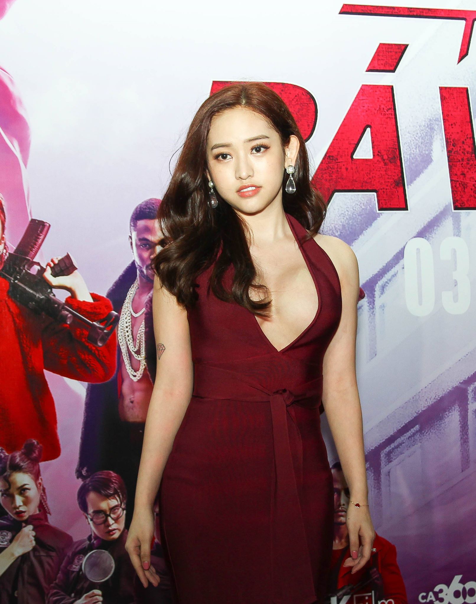 Xuất hiện tại Buổi họp báo công chiếu bộ phim “Trường học bá vương” diễn ra tại Q7 TP.HCM , Thúy Vi nổi bật lấn át dàn khách mời còn lại với chiếc đầm đỏ khoét sâu vô cùng gợi cảm.
