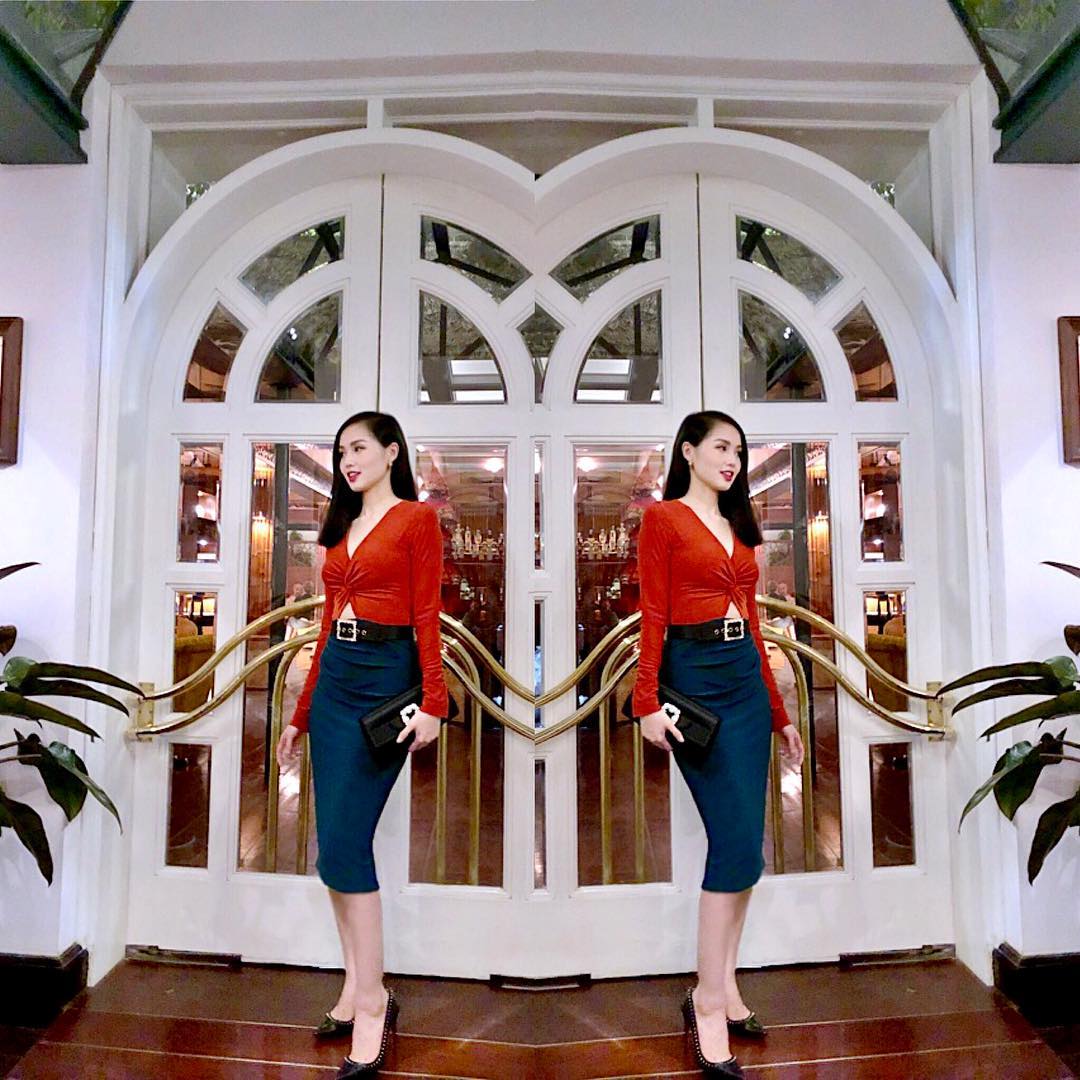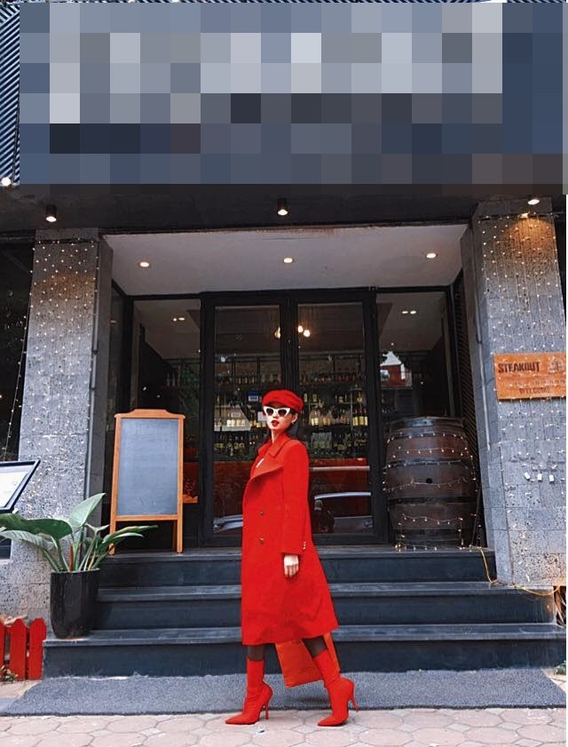 Làm mẹ phải đẹp mọi lúc mọi nơi, cô vô cùng sành điệu khi diện bộ nguyên set đồ màu đỏ rực