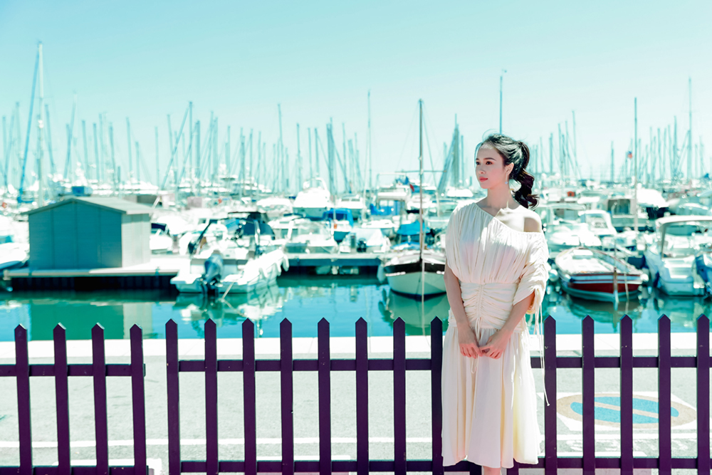 Xuất hiện trong chiếc váy hở vai, vẻ tinh khôi của cô toát lên tựa như “nữ thần lạc bước”.