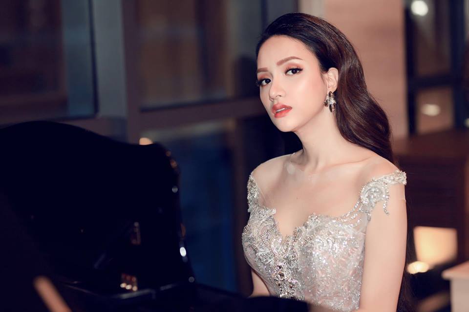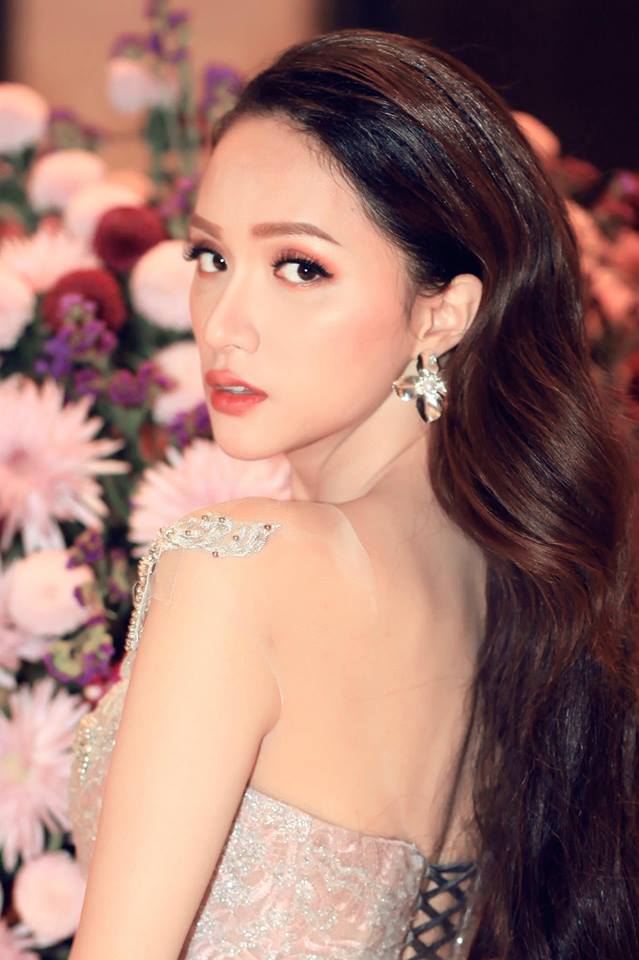 Tối 29/4, Hương Giang xuất hiện tại một bữa tiệc ở Đà Nẵng. Cô diện váy xuyên thấu ánh bạc của NTK Anh Thư.
