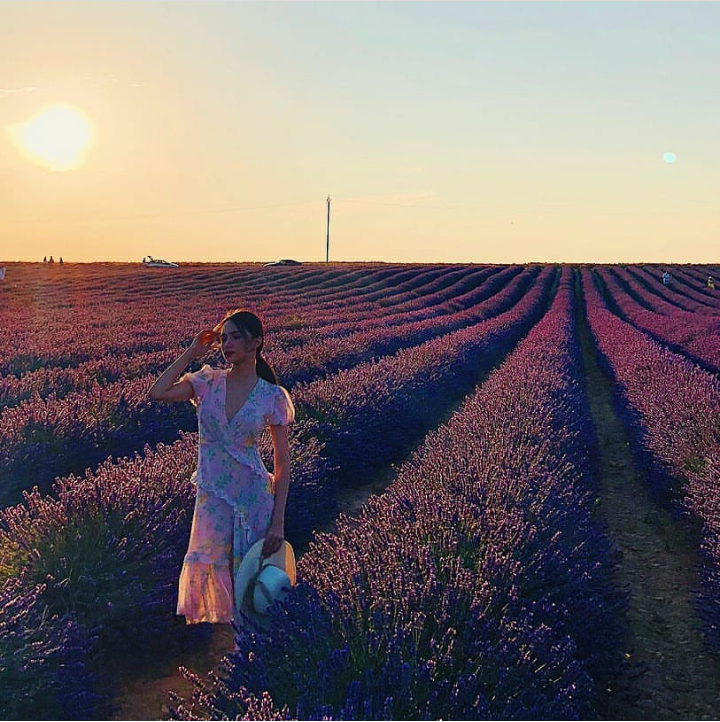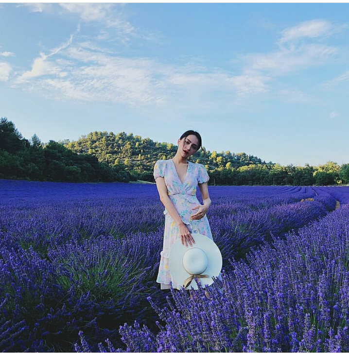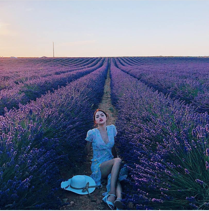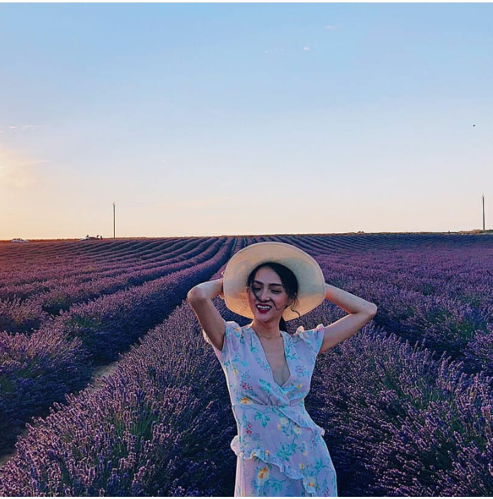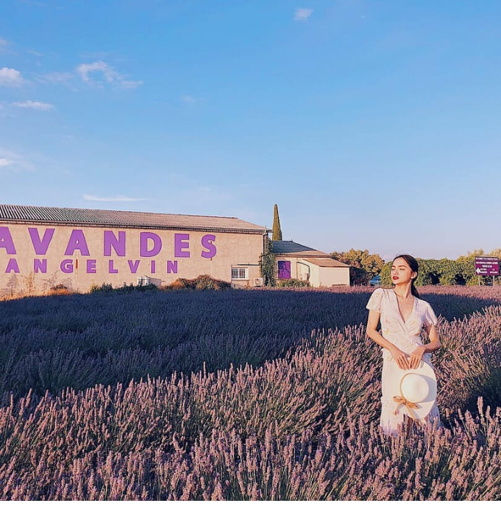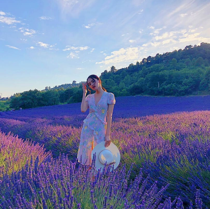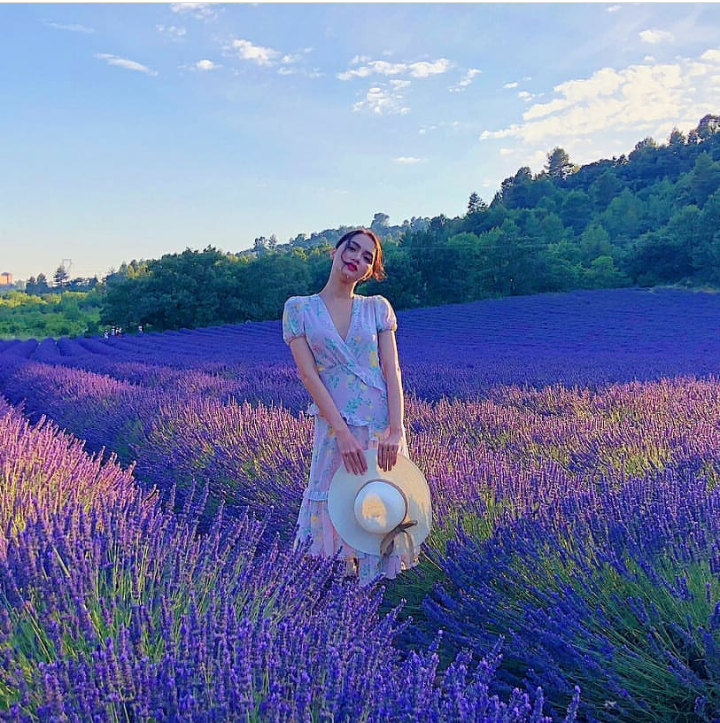 Lần này 'bà bầu' Hương Giang khoe dáng nuột nà trong một chiếc đầm xòe nữ tính hòa mình vào khung cảnh thơ mộng của cánh đồng hoa oải hương tại miền Nam nước Pháp khiến nhiều người phải ghanh tị.