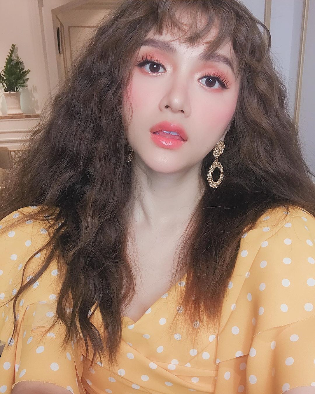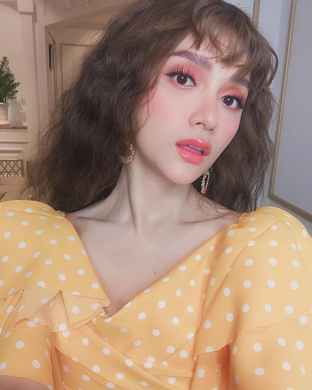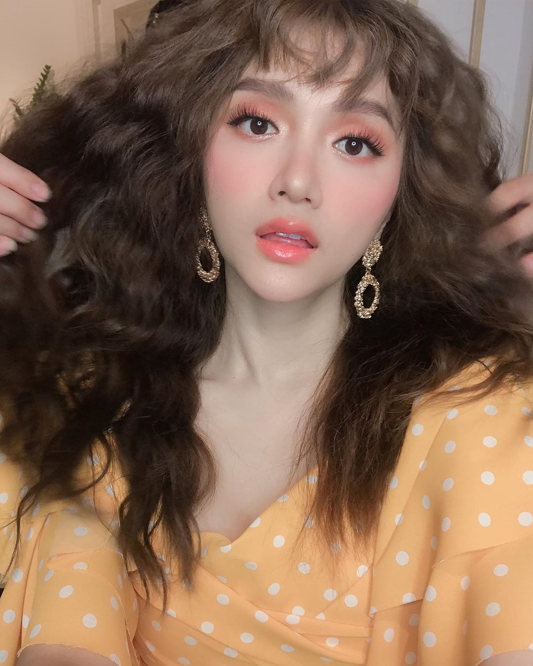 Với kiểu tóc mới lạ cùng kiểu make up tông hồng cam ngọt ngào, Hương Giang hoàn toàn trông giống một cô búp bê Nga xinh đẹp