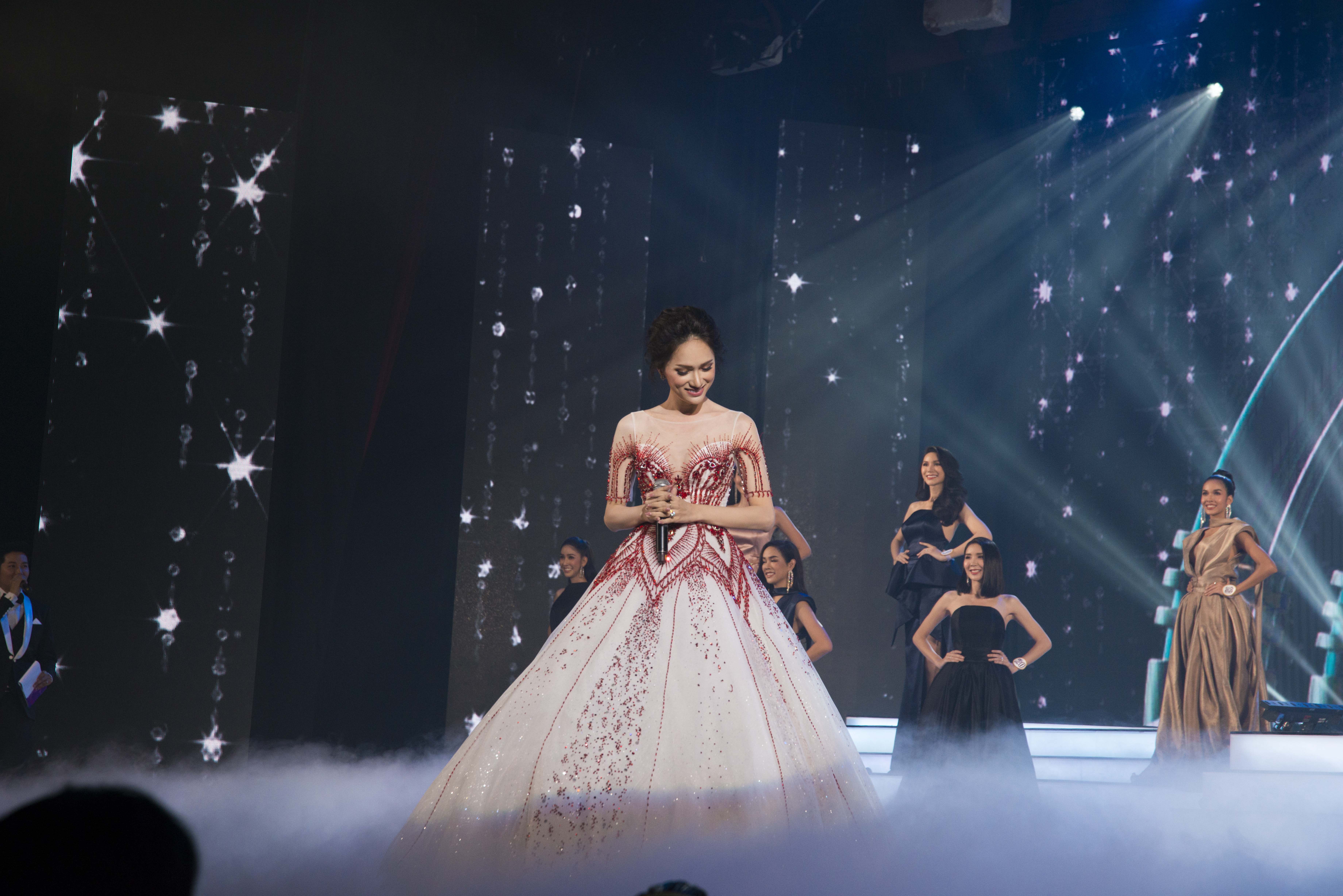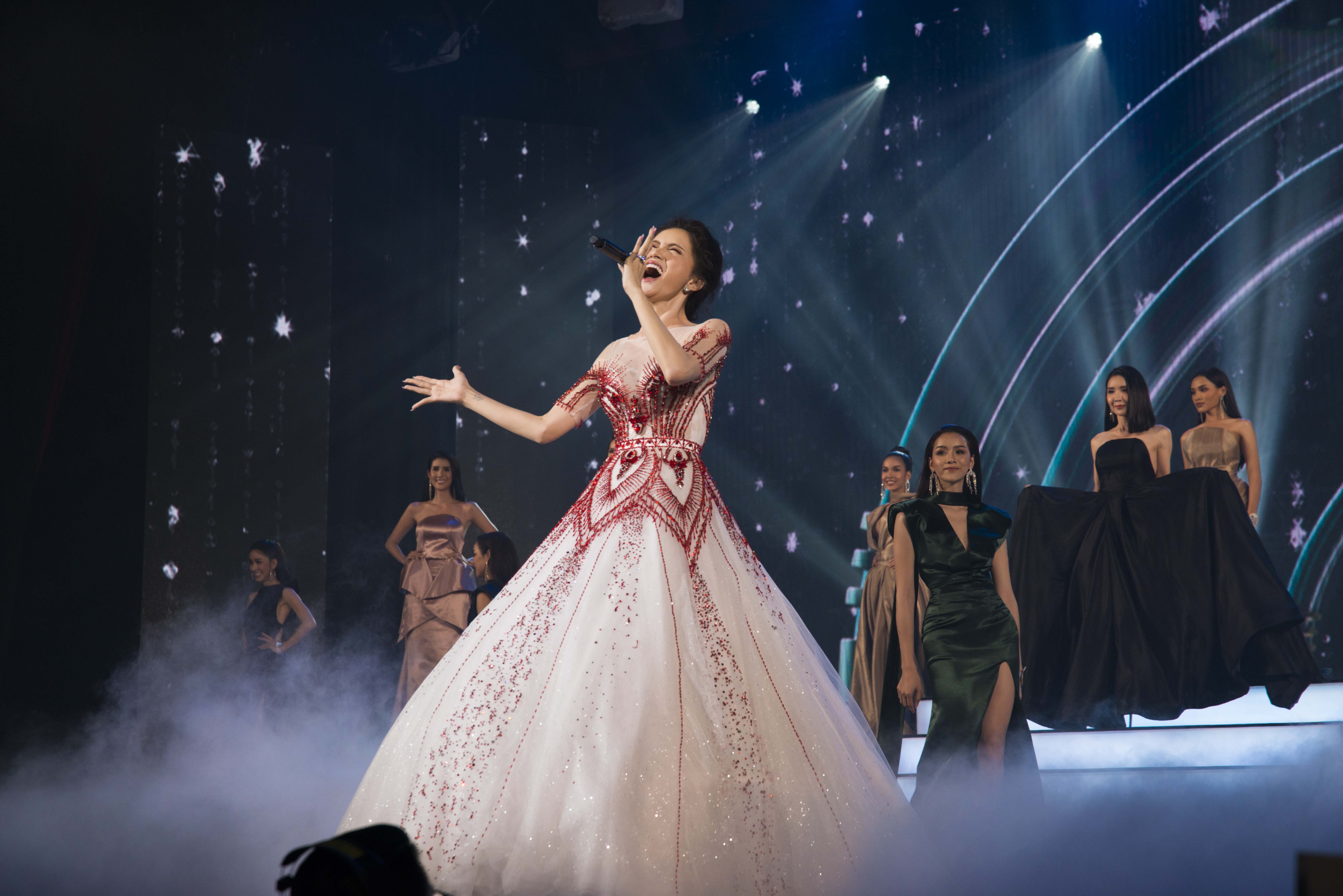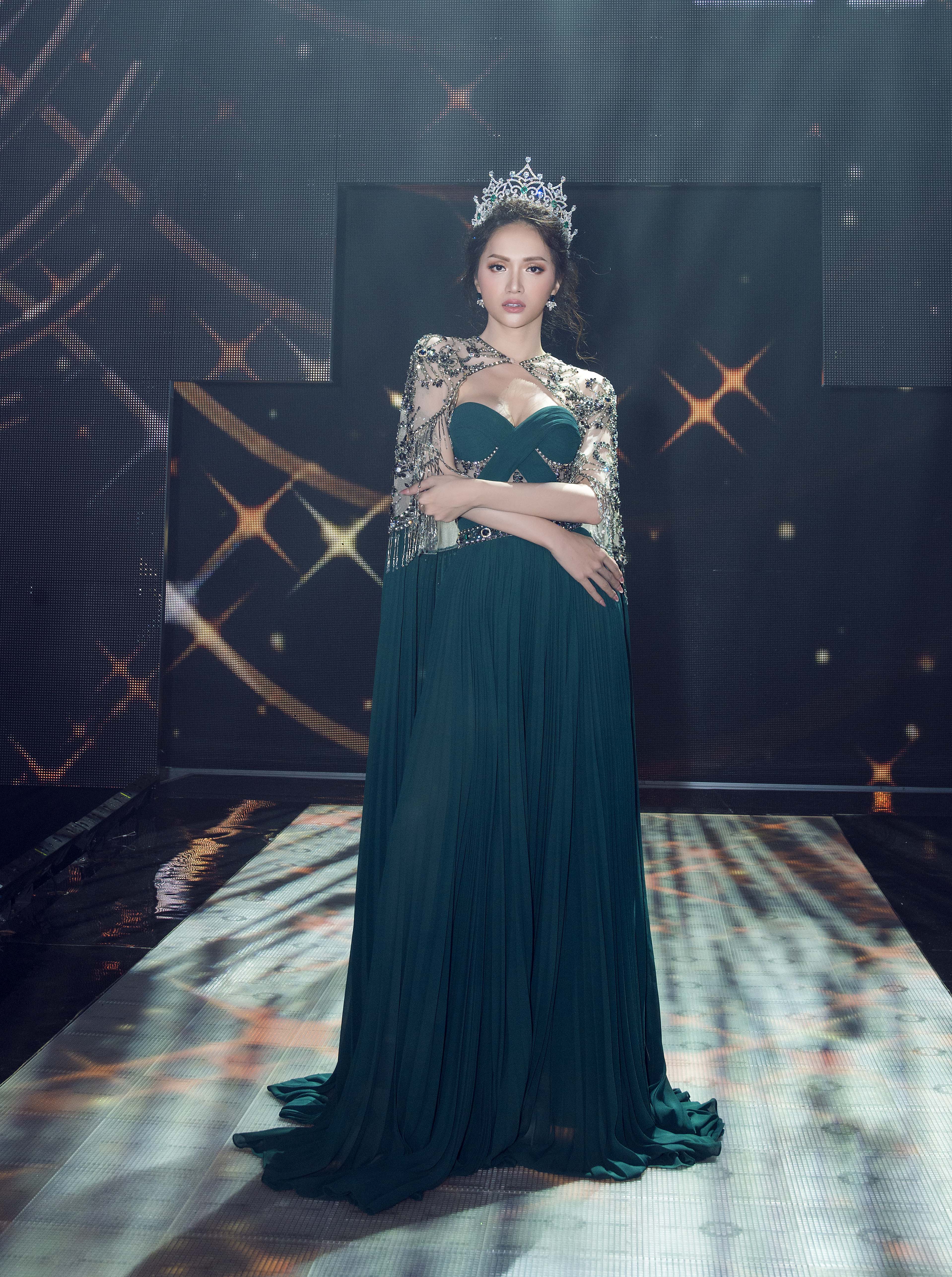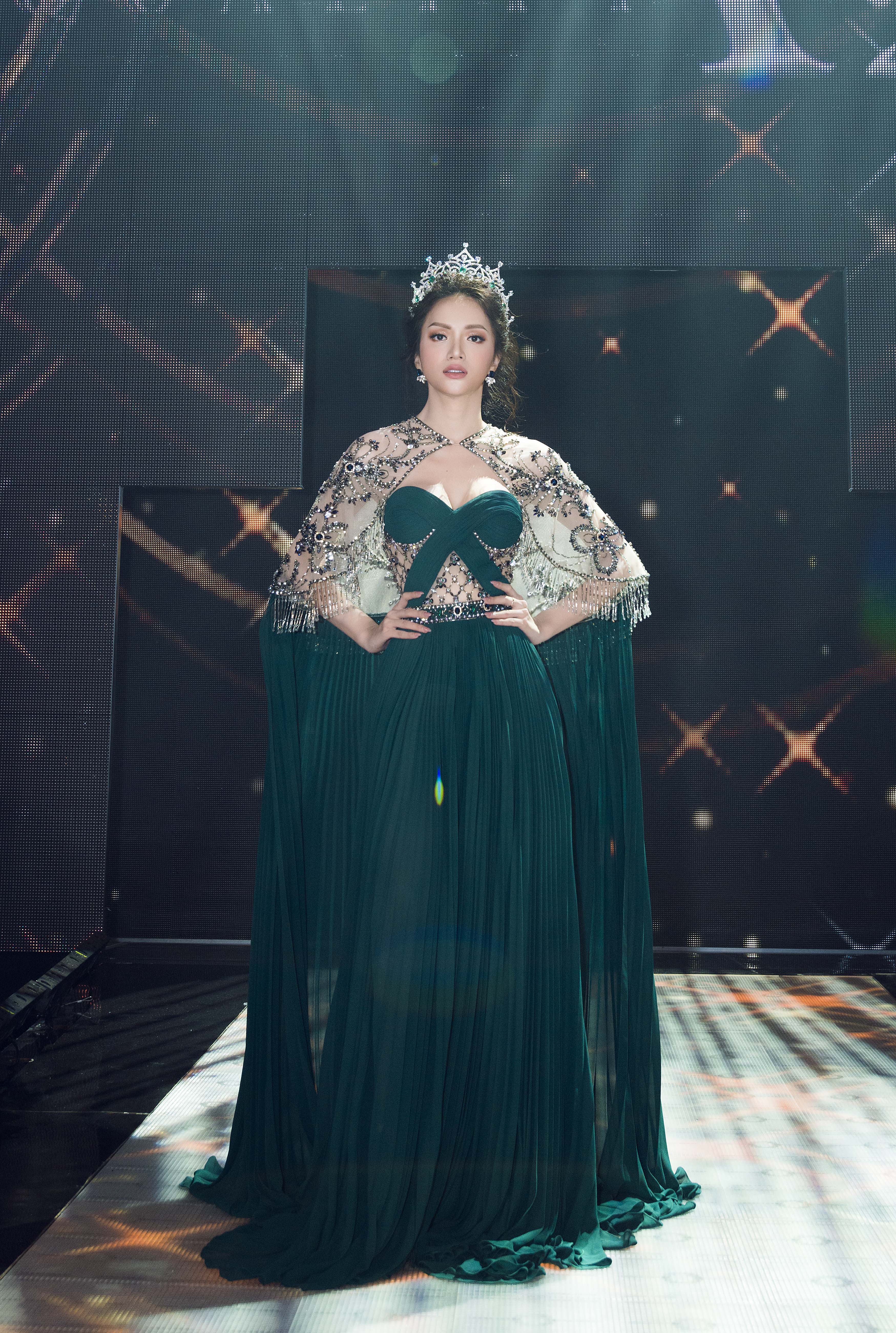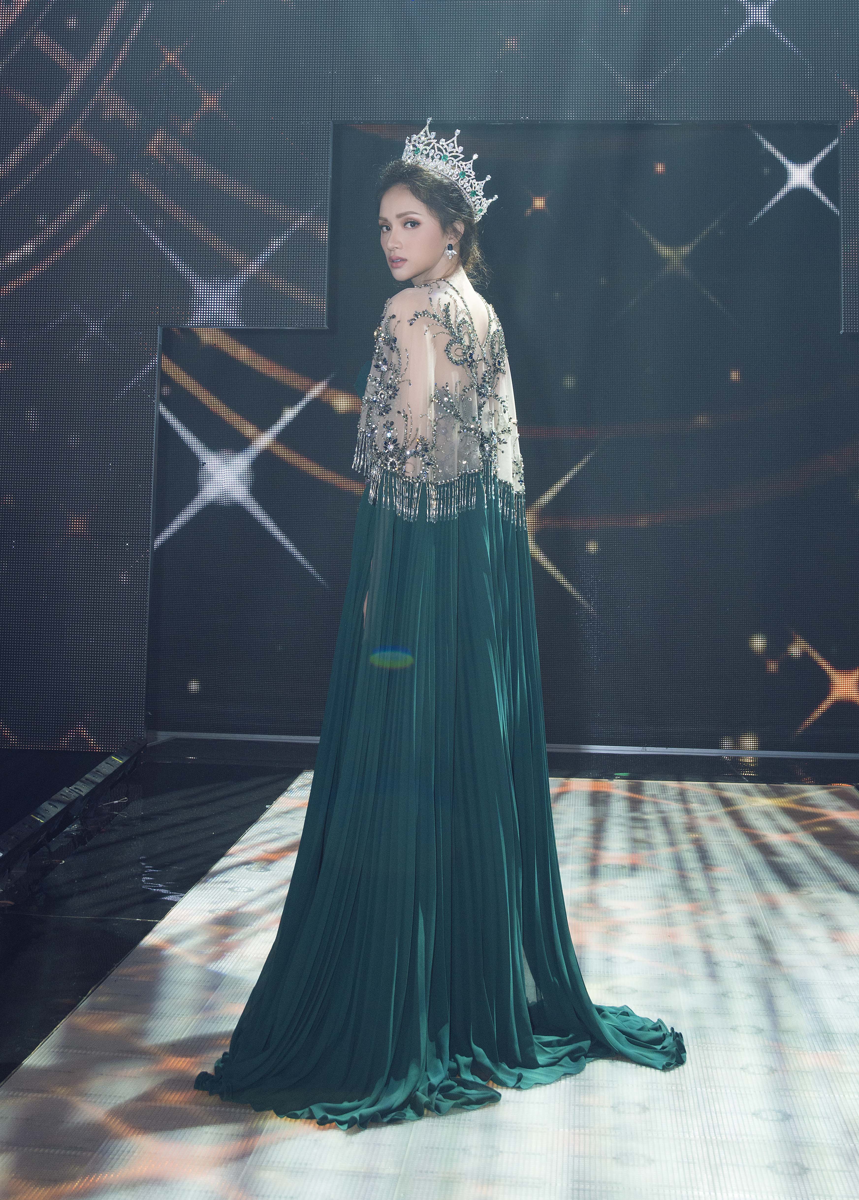 Kết hợp cùng vương miện và đôi hoa tai, người đẹp biến hình thành nữ thần trên sân khấu, khiến khán giả chẳng thể rời mắt.