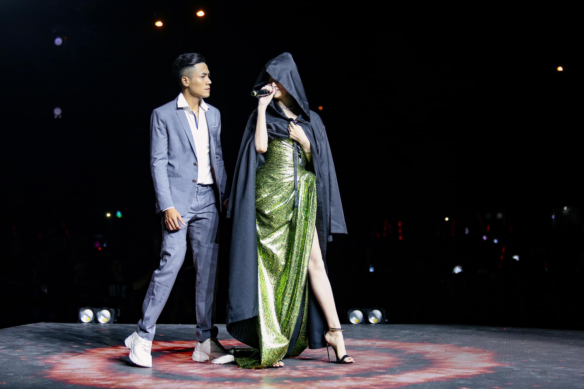 Đường xẻ quá táo bạo nếu không biết cách xử lí dễ khiến người mặc rơi vào trạng thái “lộ hàng”. Nhưng với bản lĩnh sân khấu của mình, Hương Giang chẳng hề để xảy ra mất cứ sự cố nào.