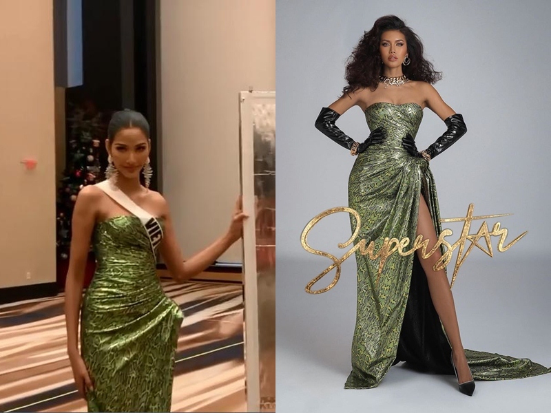 Một thú vị khác lại trong hành trang đến với Miss Universe 2019, á hậu Hoàng Thùy cũng chọn chiếc váy này và gây thương nhớ cho biết bao nhiêu fan khắp thế giới. Còn nhớ, á hậu của chúng ta chọn chiếc đầm tuyệt mỹ này khi đi tập catwalk trong khuôn khổ cuộc thi.