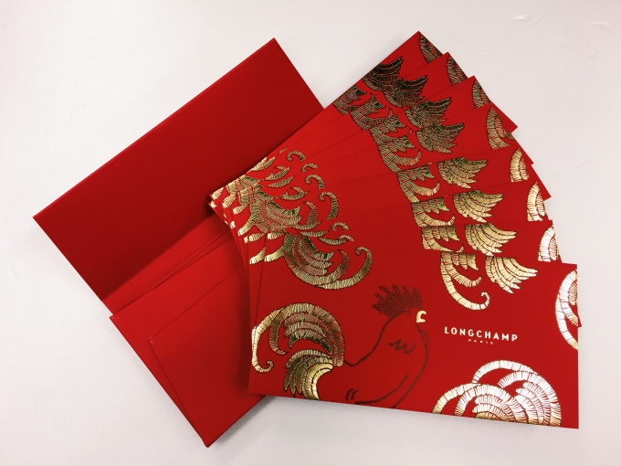 Thương hiệu túi xách thời trang nổi tiếng chiêm ngưỡng thiên hạ với phong bao họa tiết đuôi gà bằng chỉ thêu. Sinh động và dễ thương, mẫu lì xì này thích hợp cho các em nhỏ hay các cô gái điệu đà.