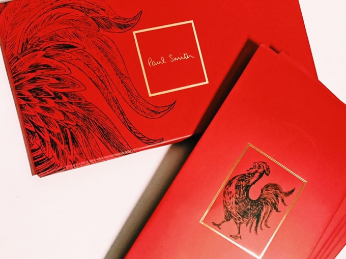 Hãng Paul Smith của Anh cho “ra lò” mẫu lì xì với hình thức đơn giản, thanh lịch, in hình chú gà trống được vẽ bằng mực tàu.