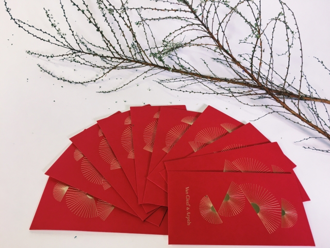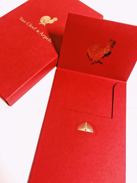 Thương hiệu trang sức của Pháp không “đi theo số đông” - không in hình gà trống lên mặt trước của lì xì mà lại là hình cánh quạt.