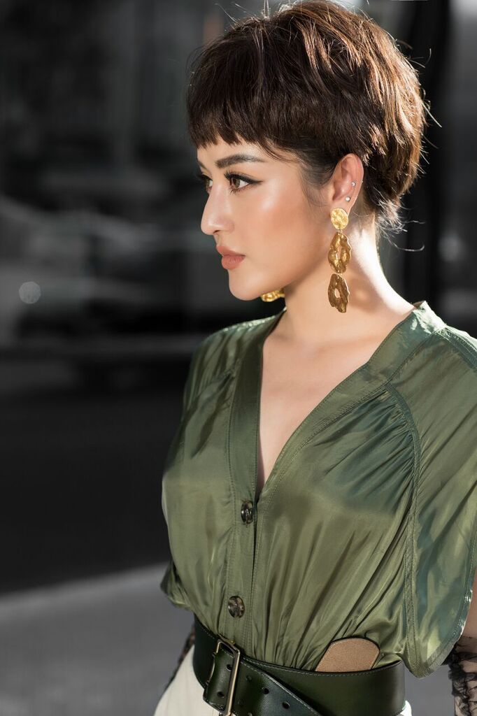 Từ một nàng hậu được cho là an toàn với mái tóc dài nữ tính, Huyền My gây sốc khi xuất hiện cùng tạo hình tóc tém sắc lạnh và ấn tượng.