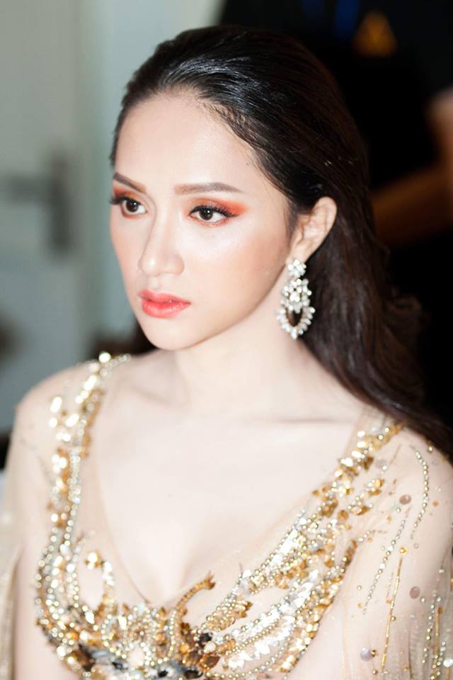 Hương Giang để mái tóc ướt chuẩn “trend” cùng gương mặt được trang điểm sắc sảo.