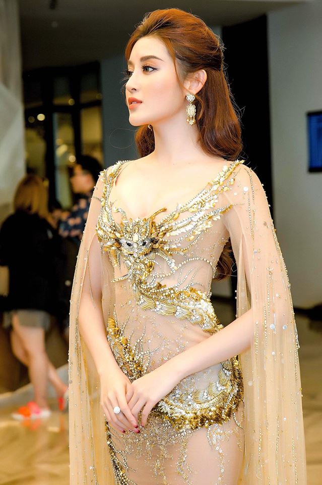 Chiếc váy của nhà mốt Đỗ Long một lần nữa giúp Huyền My hóa “nữ thần” lấy đi bao ánh nhìn từ người hâm mộ.