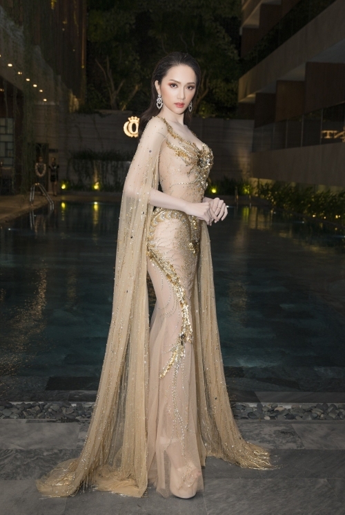 Trong khi đó Hương Giang cũng tỏ ra không thua kém “gái thẳng” Huyền My về mức độ lộng lẫy, gợi cảm. Tuy chiều cao có phần lép vế trước Huyền My, song trong bộ trang phục ánh kim, Hoa hậu chuyển giới vẫn khoe nhan sắc cùng vóc dáng “một chín một mười” với nàng á hậu.