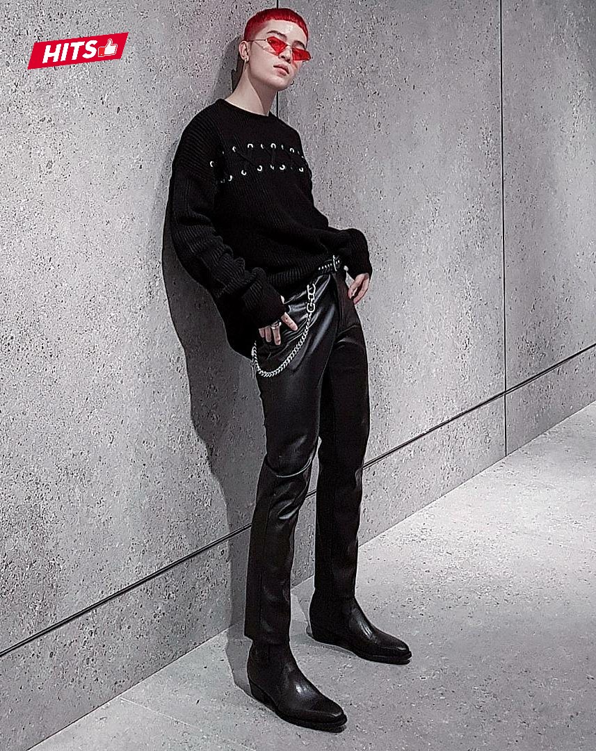 Không hổ danh là một trong những stylist hàng đầu Việt Nam, Kelbin Lei diện outfit với gam màu đen đặc trưng, nhấn nhá dây xích cùng điểm sáng đắt giá là mắt kính đỏ họa tiết hình học lạ mắt.