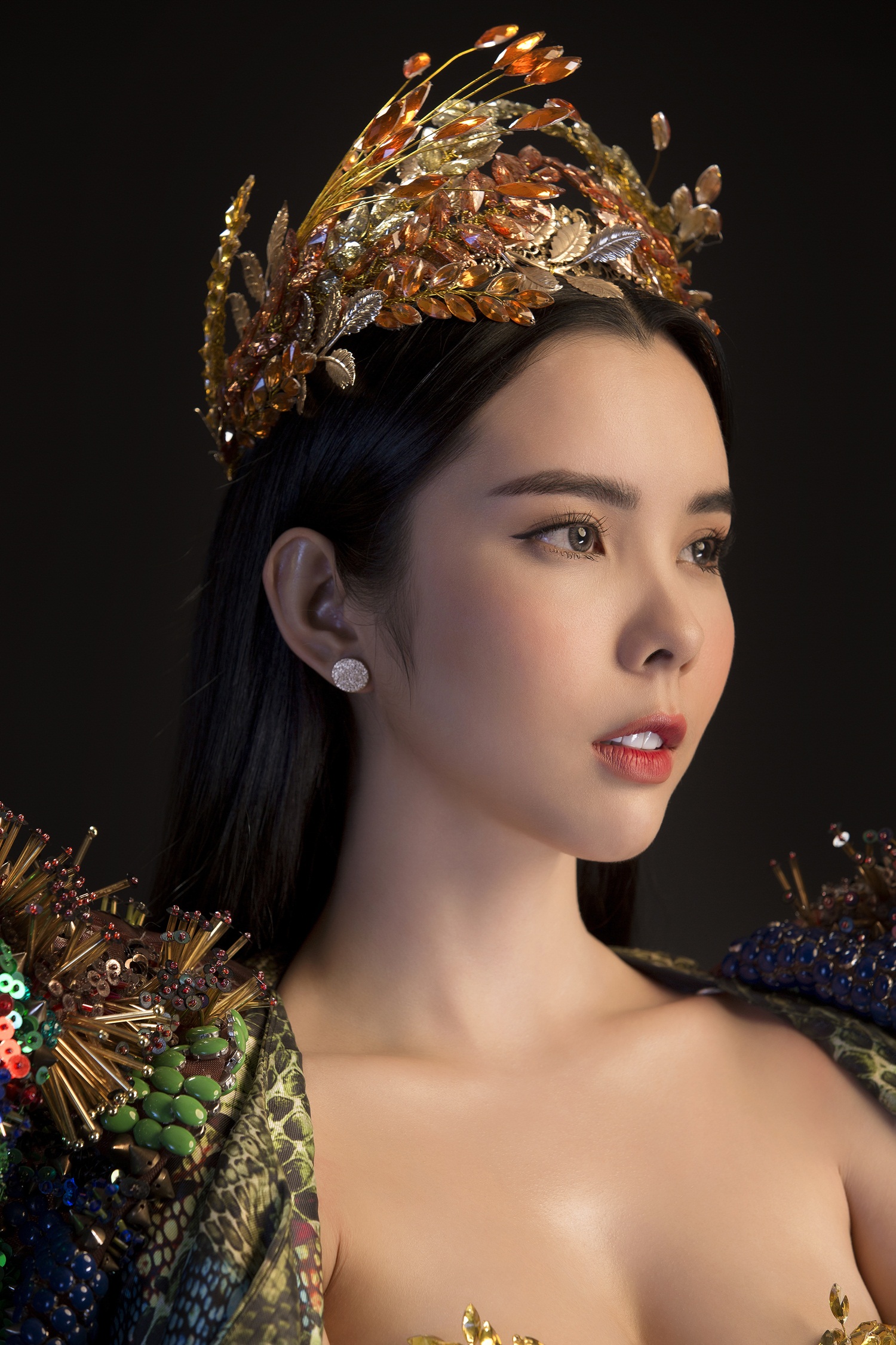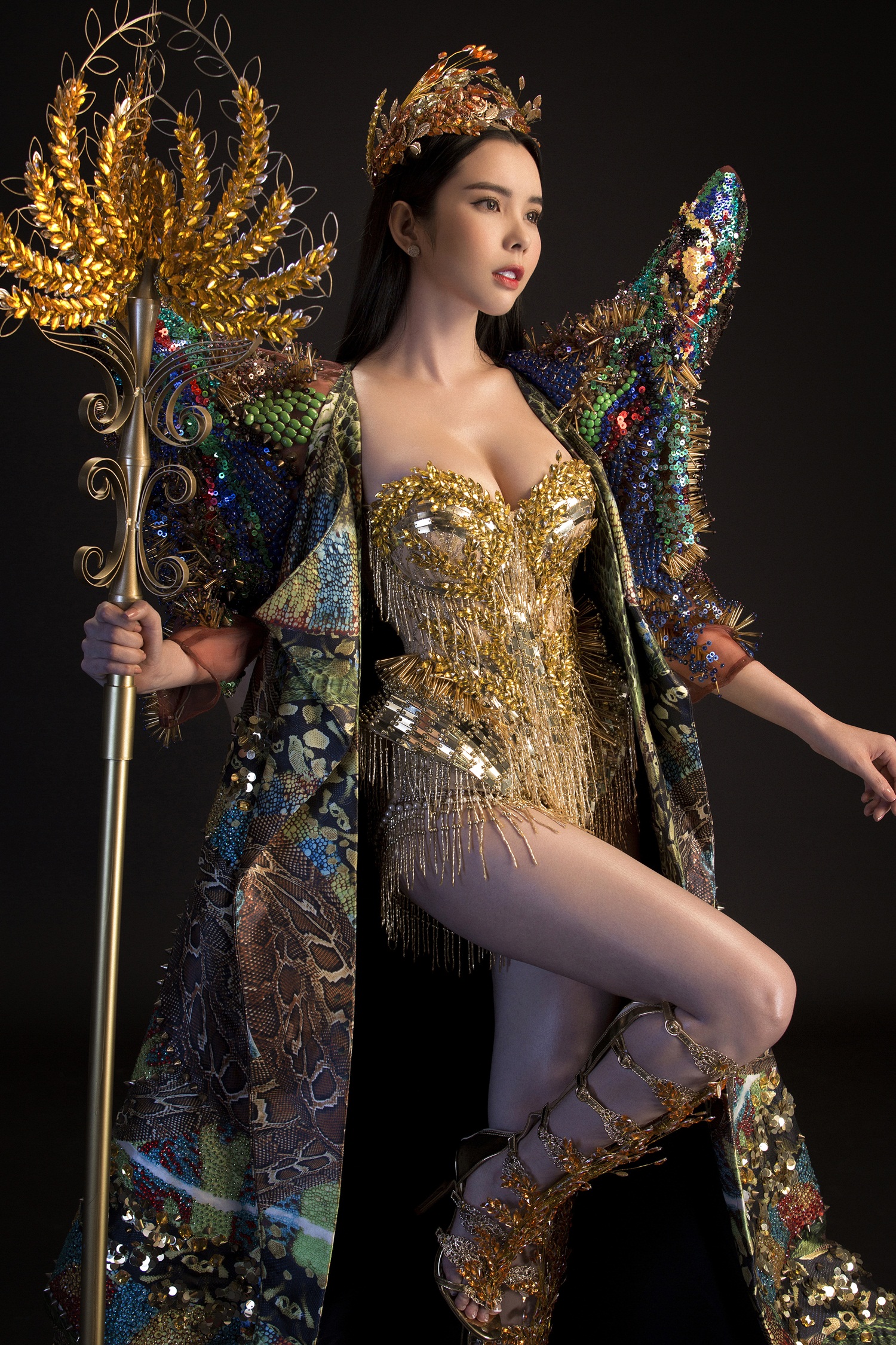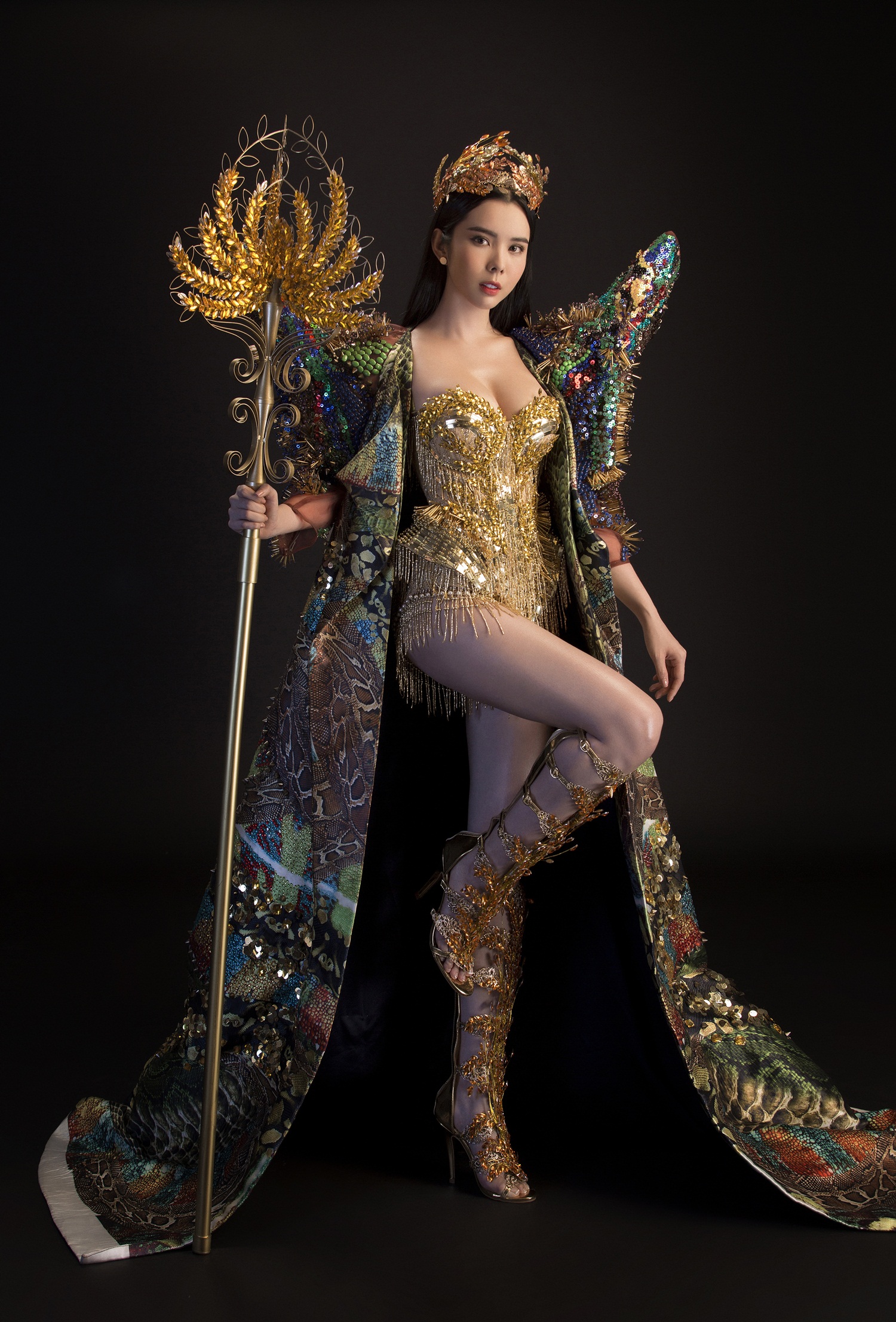Nhắc đến cây lúa Việt Nam là nhắc đến cả một nền văn hóa lúa nước lâu đời kéo dài hàng ngàn năm nay, với những giá trị và hình ảnh chân quê mộc mạc. Từ chính câu chuyện và hình ảnh cây lúa, NTK Phạm Chí Công đã sáng tạo ra bộ trang phục mang tên “Nữ thần mùa màng” không kém phần táo bạo và độc đáo giúp Huỳnh Vy tỏa sáng khi mang đến với bạn bè năm châu.