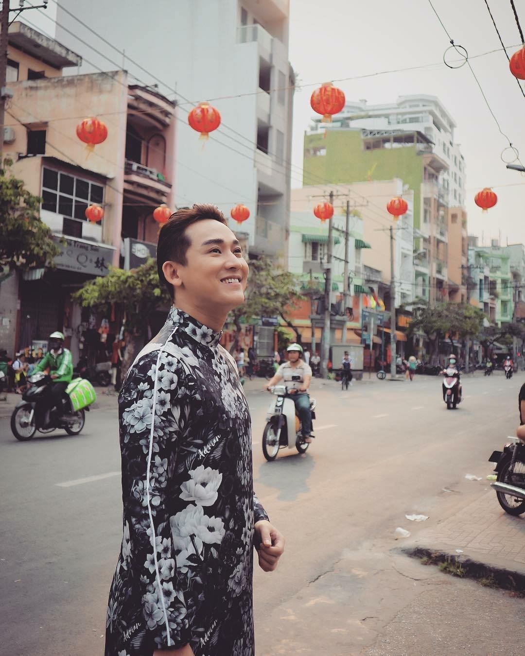 “Soái ca vạn người mê” Hứa Vĩ Văn cười tỏa nắng trong chiếc áo dài. Với những hoa văn đơn giản và thanh lịch đã khiến nam diễn viên không cần cầu kì vẫn gây được sự chú ý.