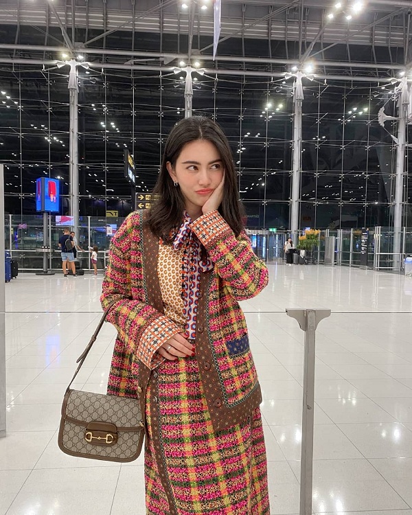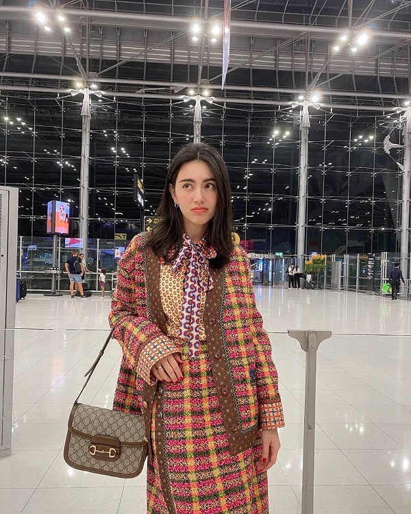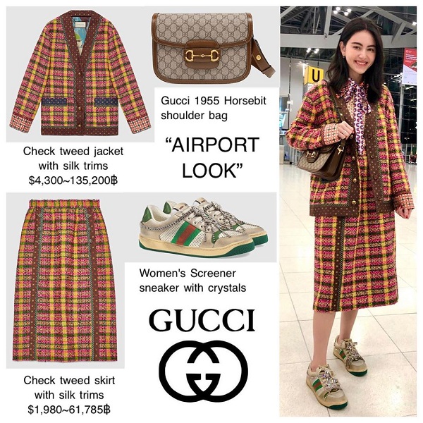 Mỹ nhân xứ Thái trong set đồ vải tweed đến từ Gucci, cô diện cả cây đồ hiệu lên đường sang Milan tham dự show thời trang của Ý